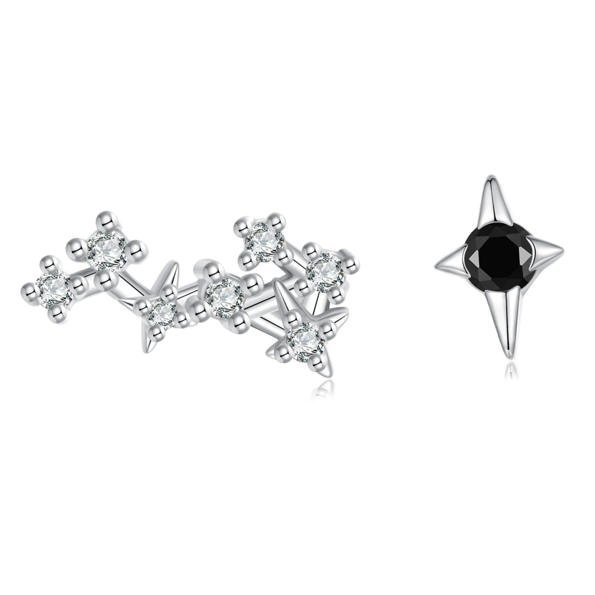 Srebrne kolczyki konstelacja Skorpiona i czarna gwiazdka sztyfty srebro 925