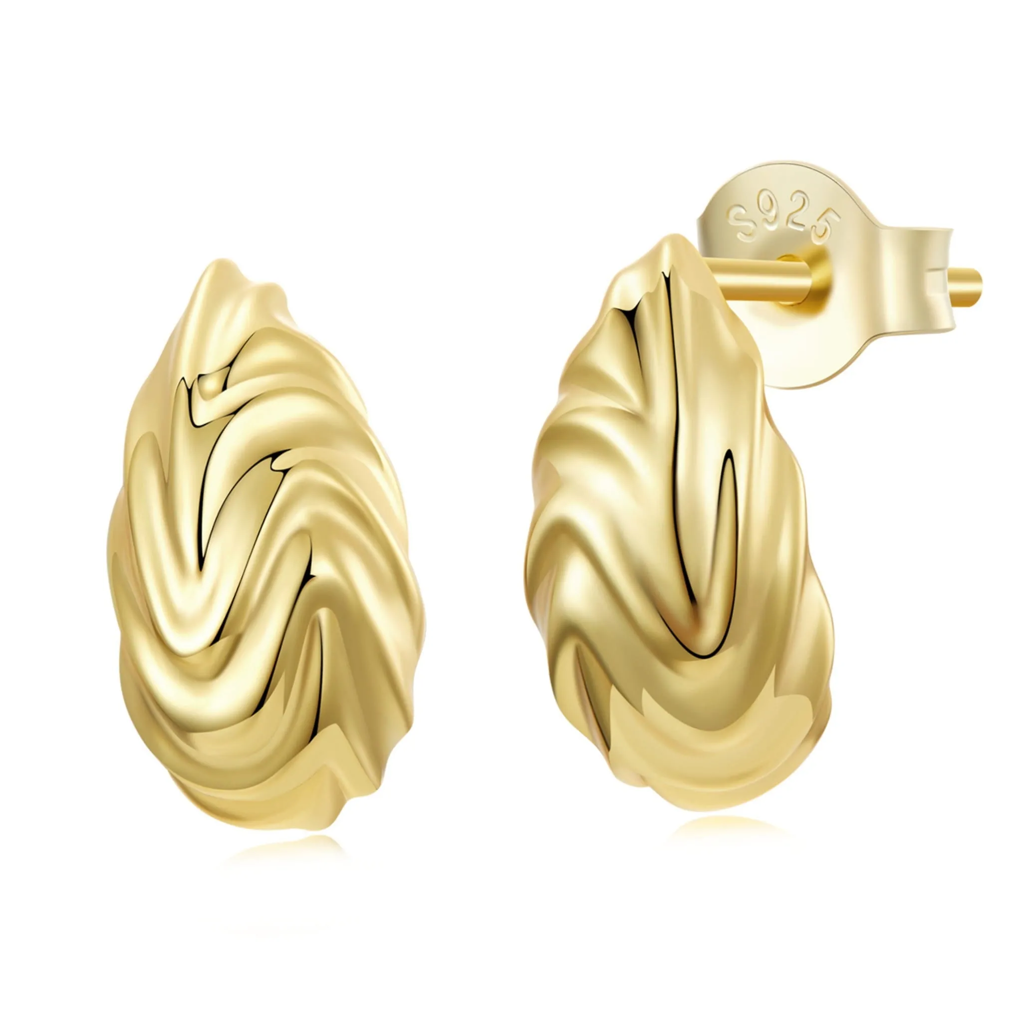 Srebrne kolczyki łezki fakturowane pozłacane sztyfty srebro 925