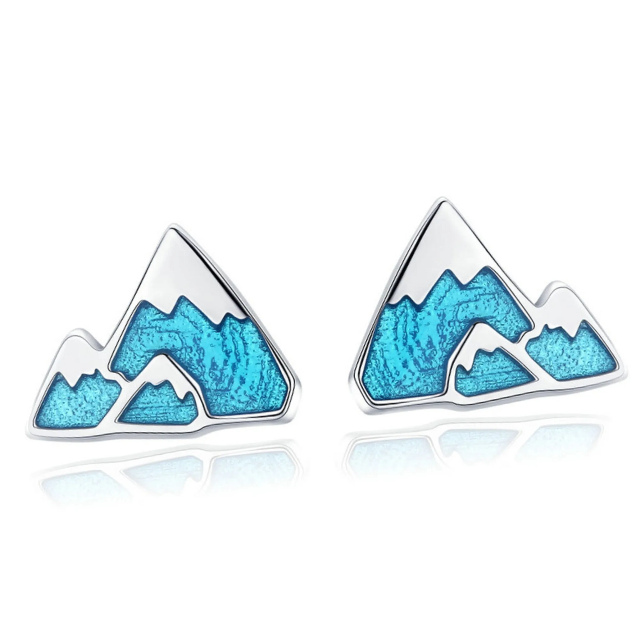 Srebrne kolczyki góry z ośnieżonymi szczytami sztyfty srebro 925