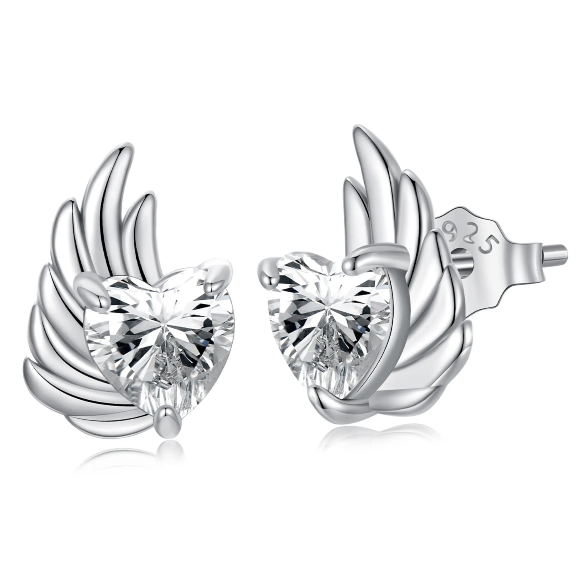 Srebrne kolczyki SERDUSZKA ZE SKRZYDŁAMI sztyfty srebro 925