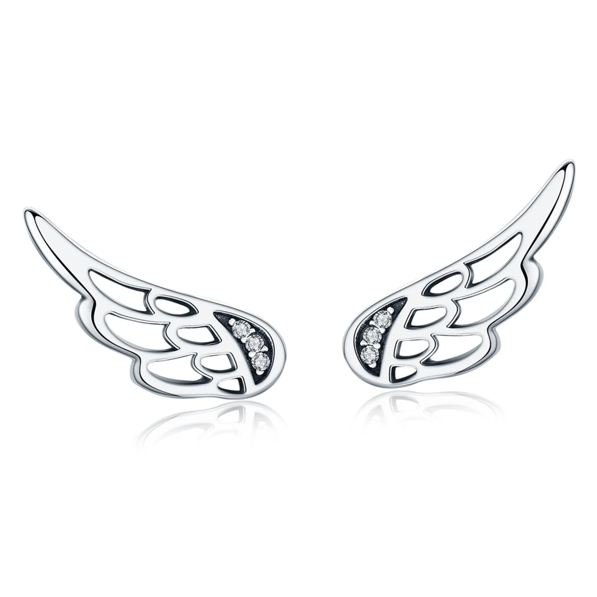 Srebrne kolczyki skrzydła z kryształkami srebro 925 sztyfty