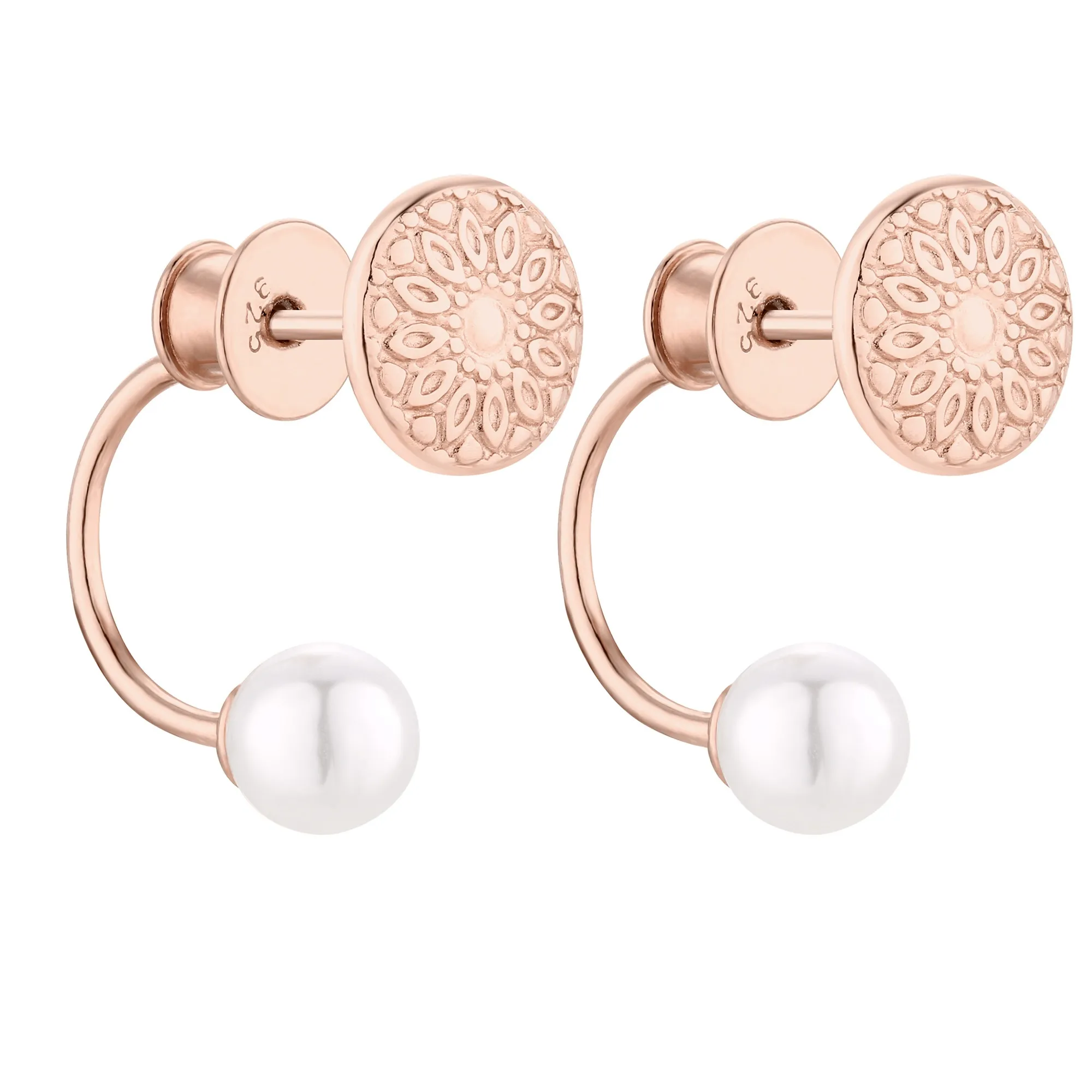 Kolczyki medaliony z różowego złota z perłami SWAROVSKI® CRYSTAL