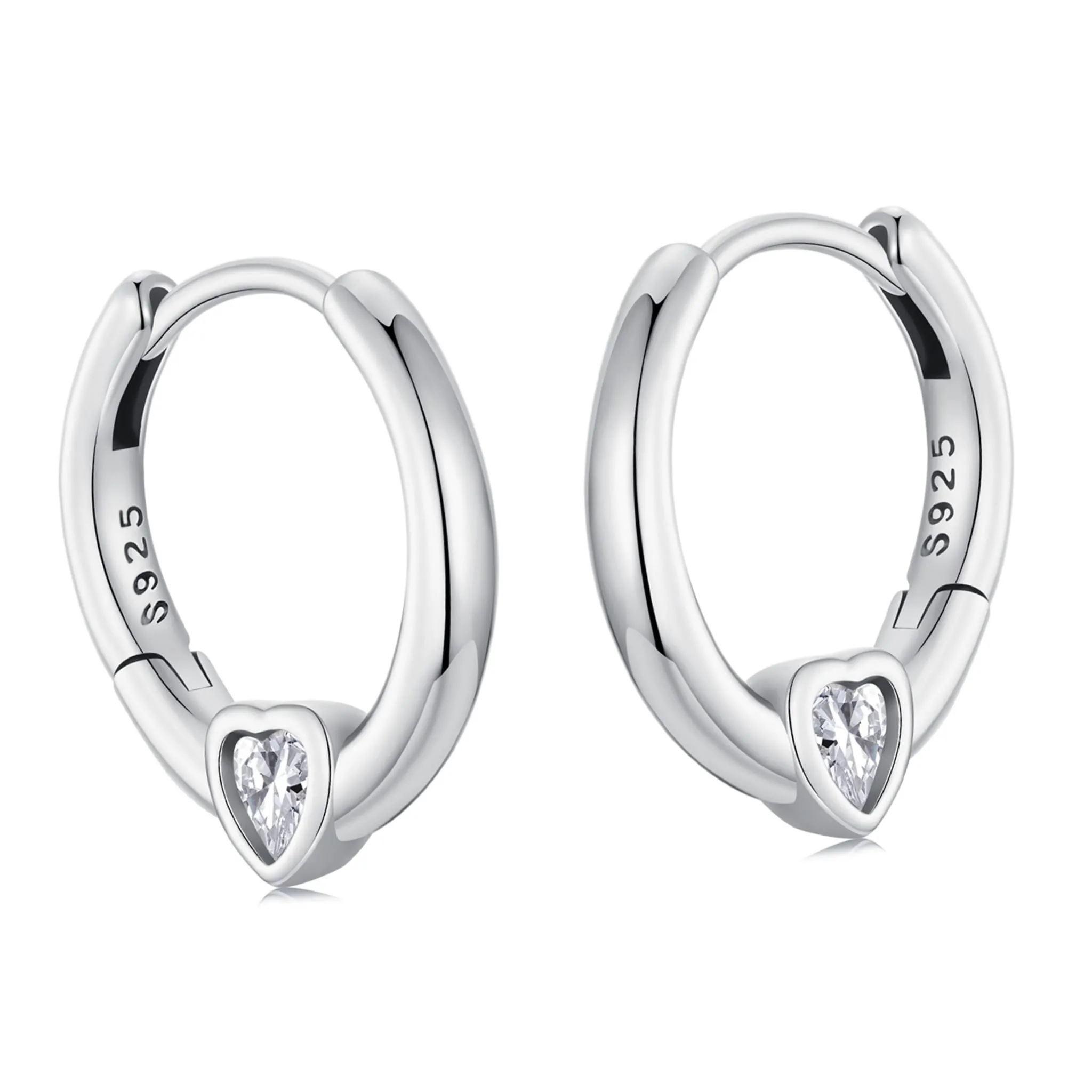 Srebrne kolczyki koła z kryształowymi serduszkami zatrzaski srebro 925