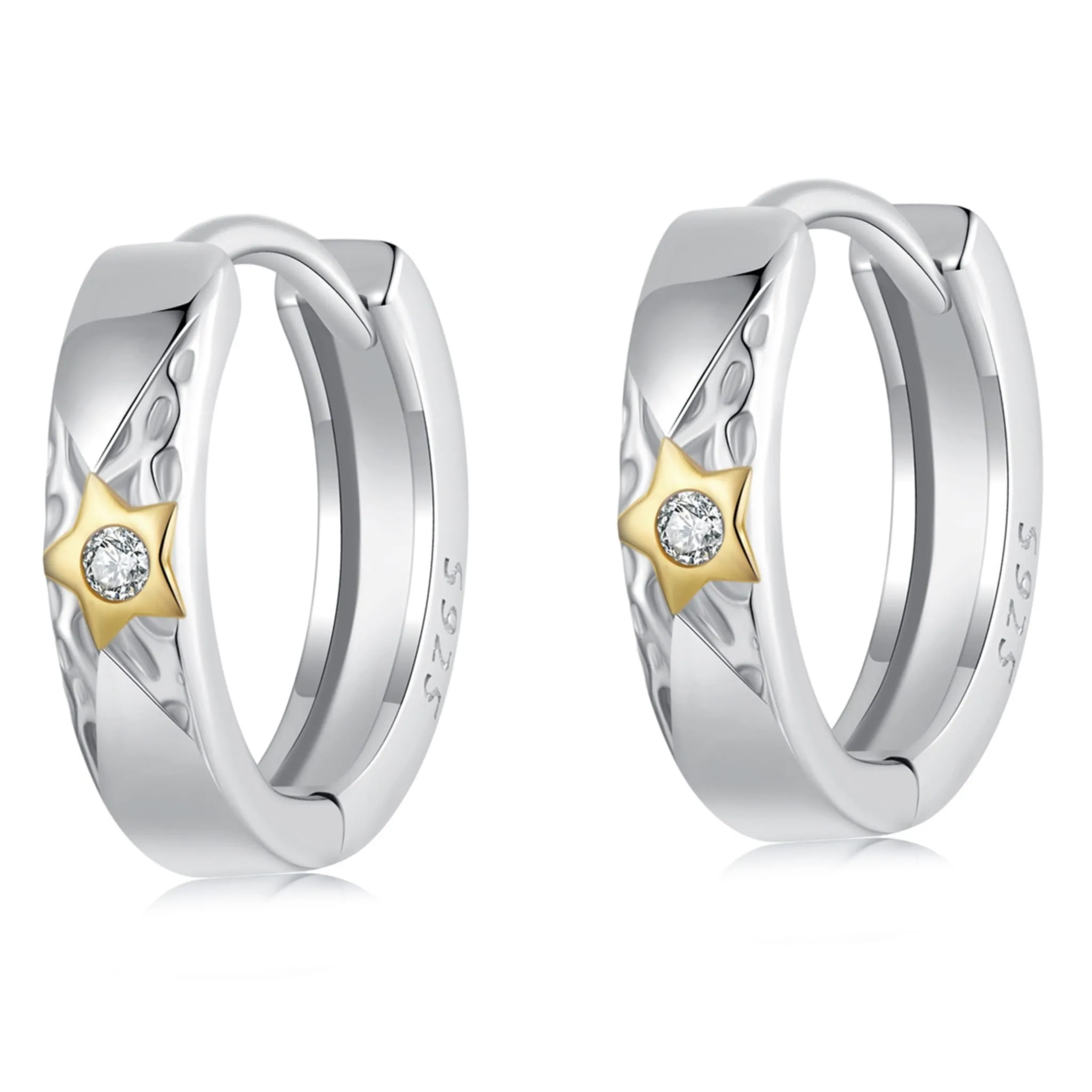 Srebrne kolczyki koła ze złotymi gwiazdkami zatrzaski srebro 925