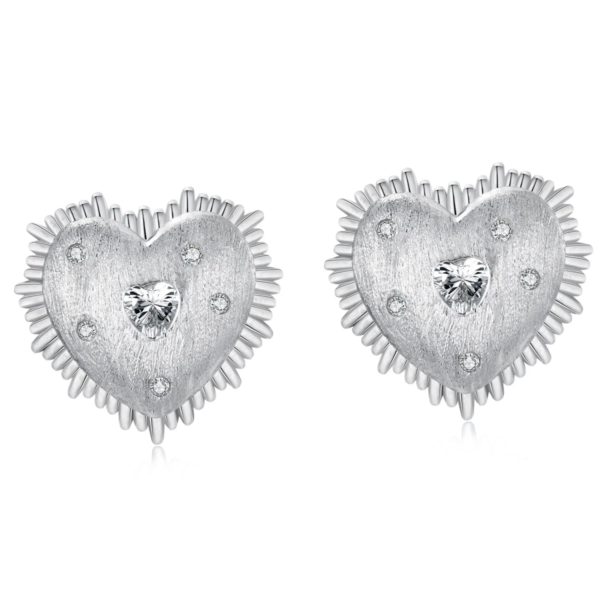 Srebrne kolczyki szczotkowane serca ozdobione kryształkami sztyfty srebro 925