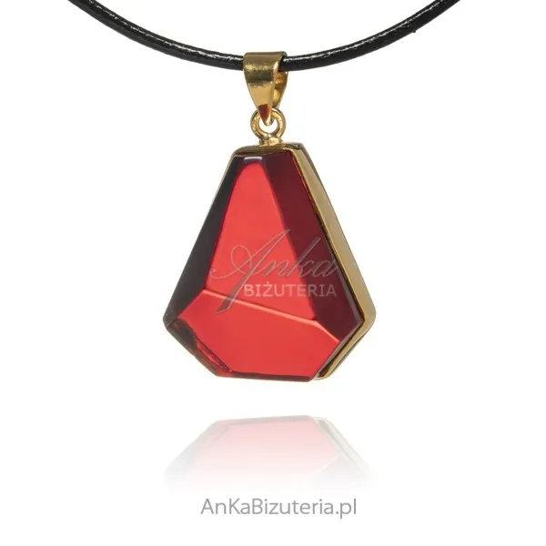 Unikat piekna zawieszka z czerwonym bursztynem - srebro pr. 925 pozłacane 18 k złotem