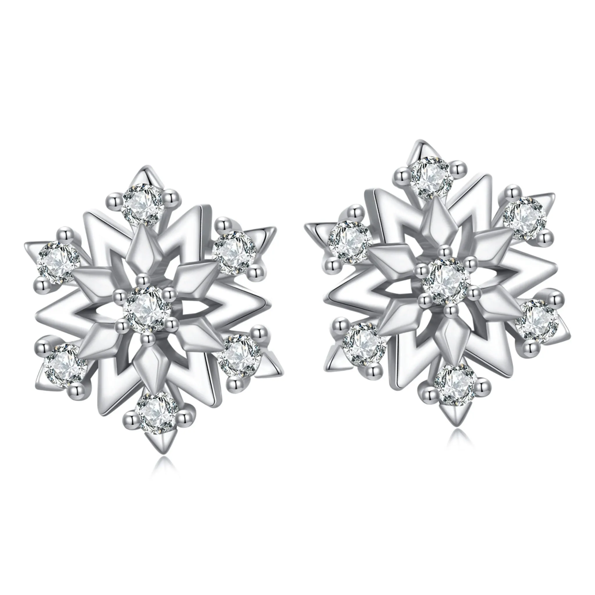 Srebrne kolczyki delikatne płatki śniegu z kryształów sztyfty srebro 925