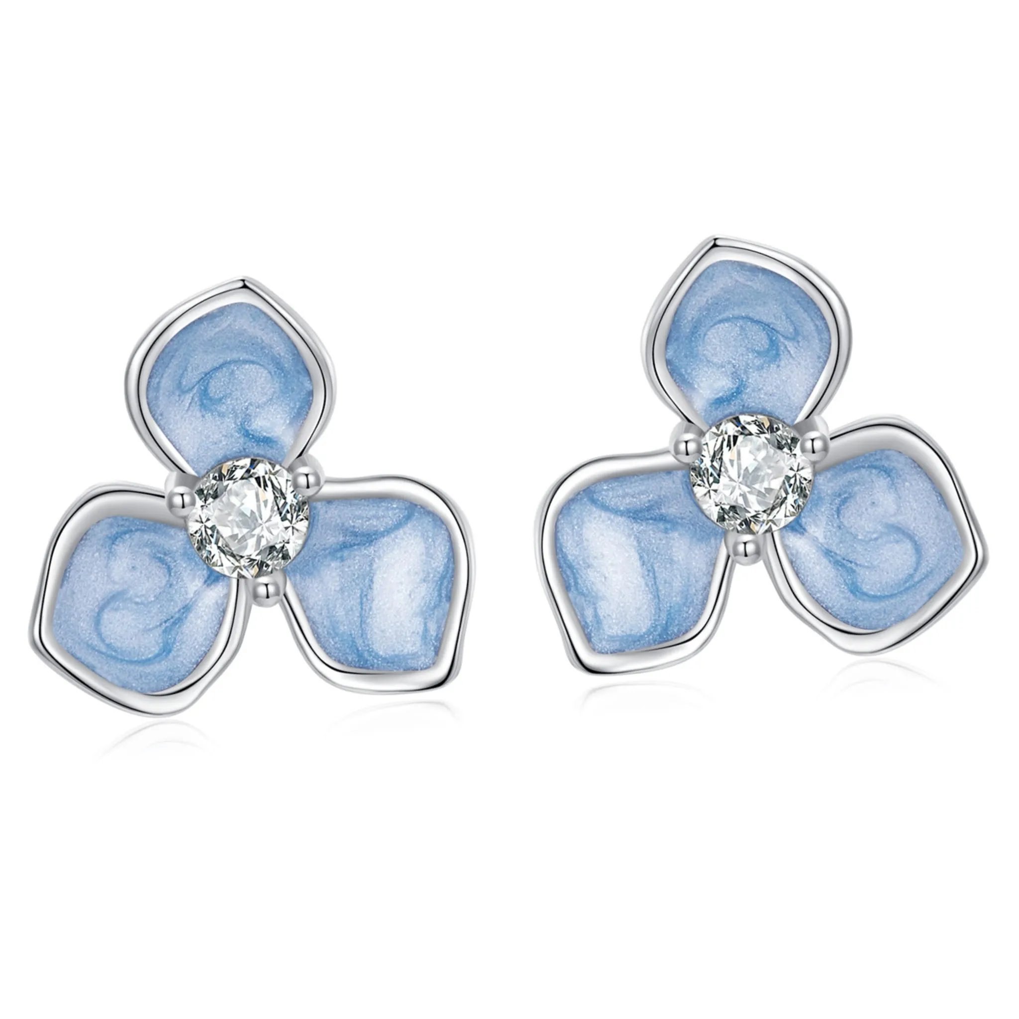 Srebrne kolczyki niebieskie kwiatuszki sztyfty srebro 925