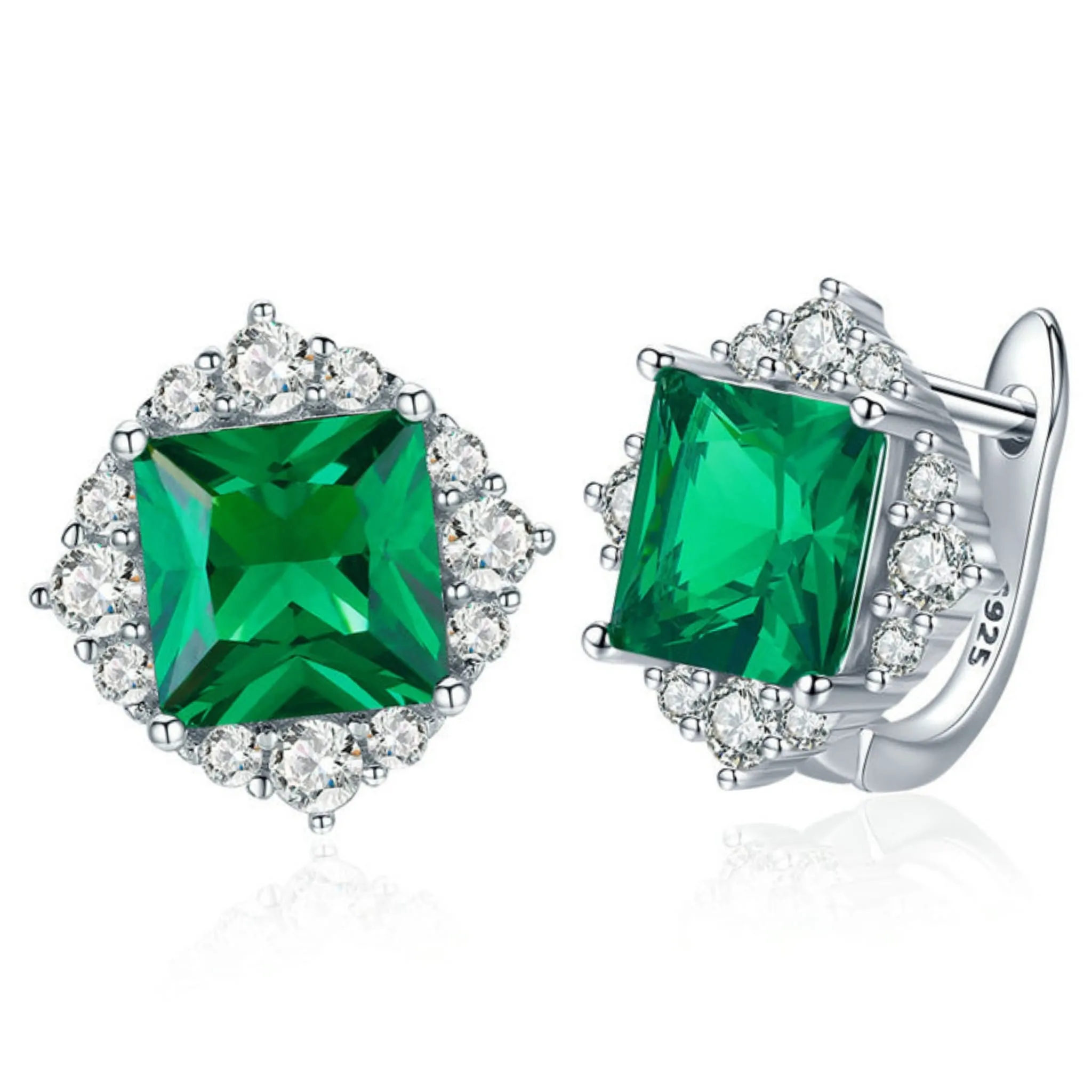 Srebrne kolczyki ze szmaragdowymi kryształami bigiel zamknięty srebro 925