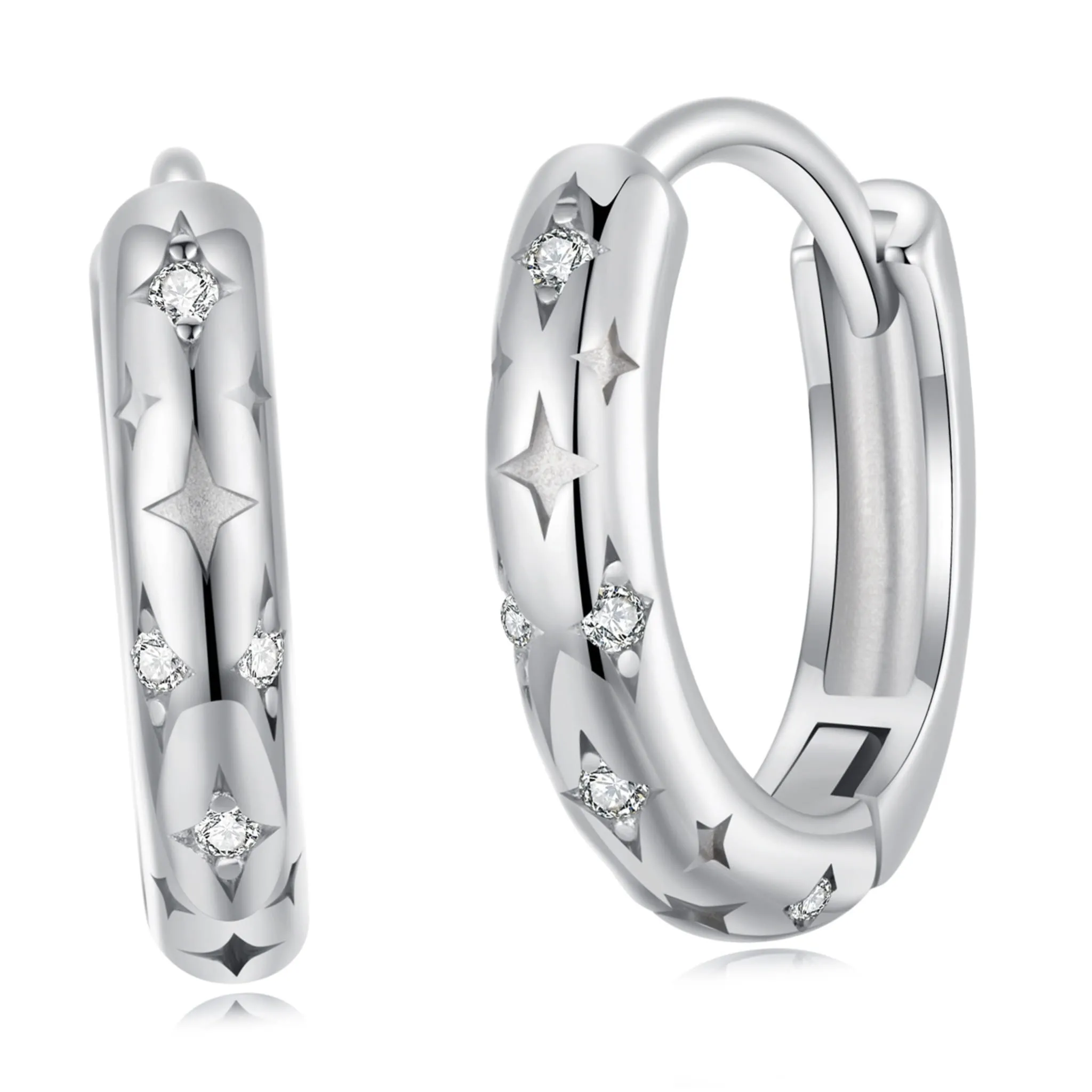 Srebrne kolczyki klasyczne koła w gwiazdki zatrzaski srebro 925
