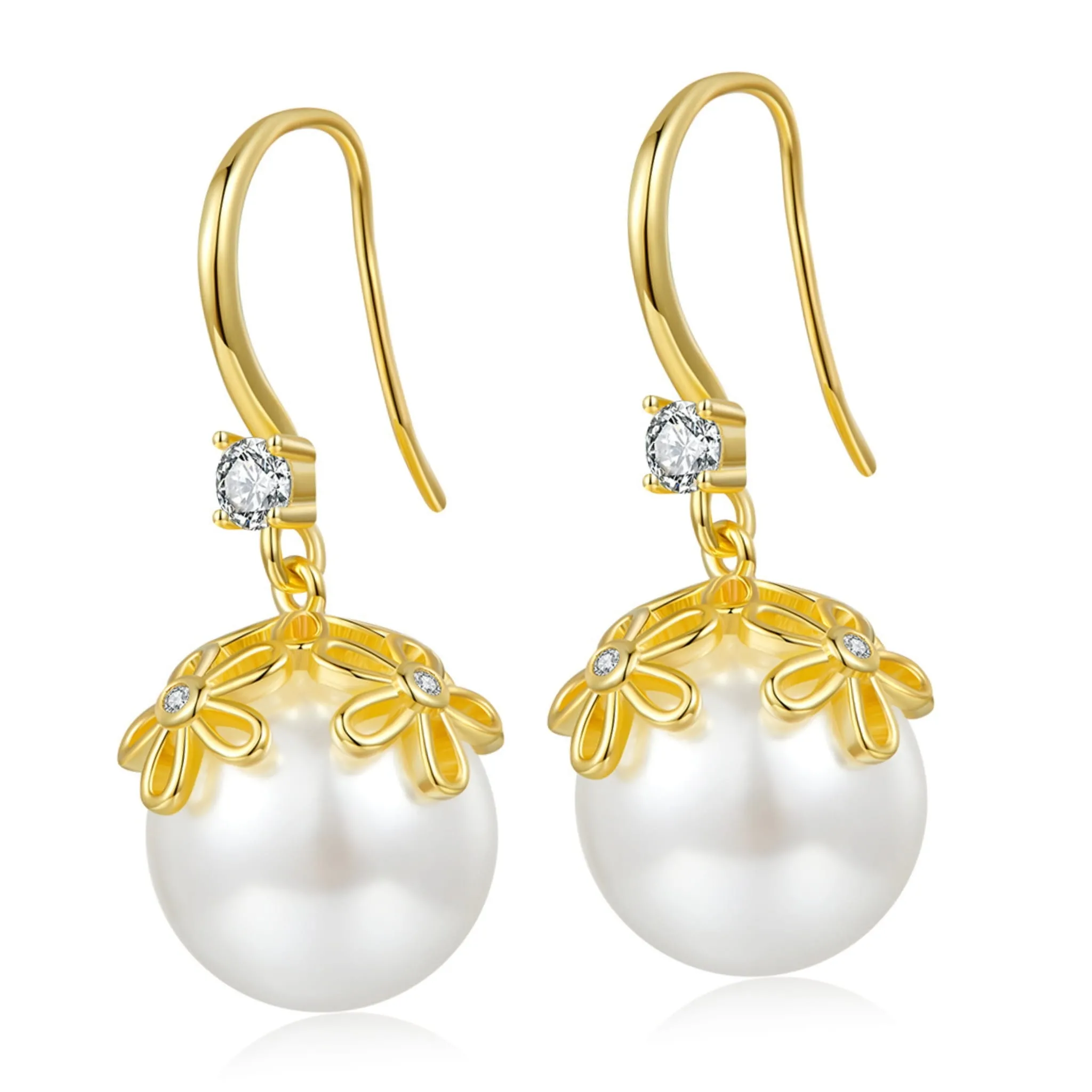 Srebrne kolczyki perły z kwiatami pozłacane bigle otwarte srebro 925