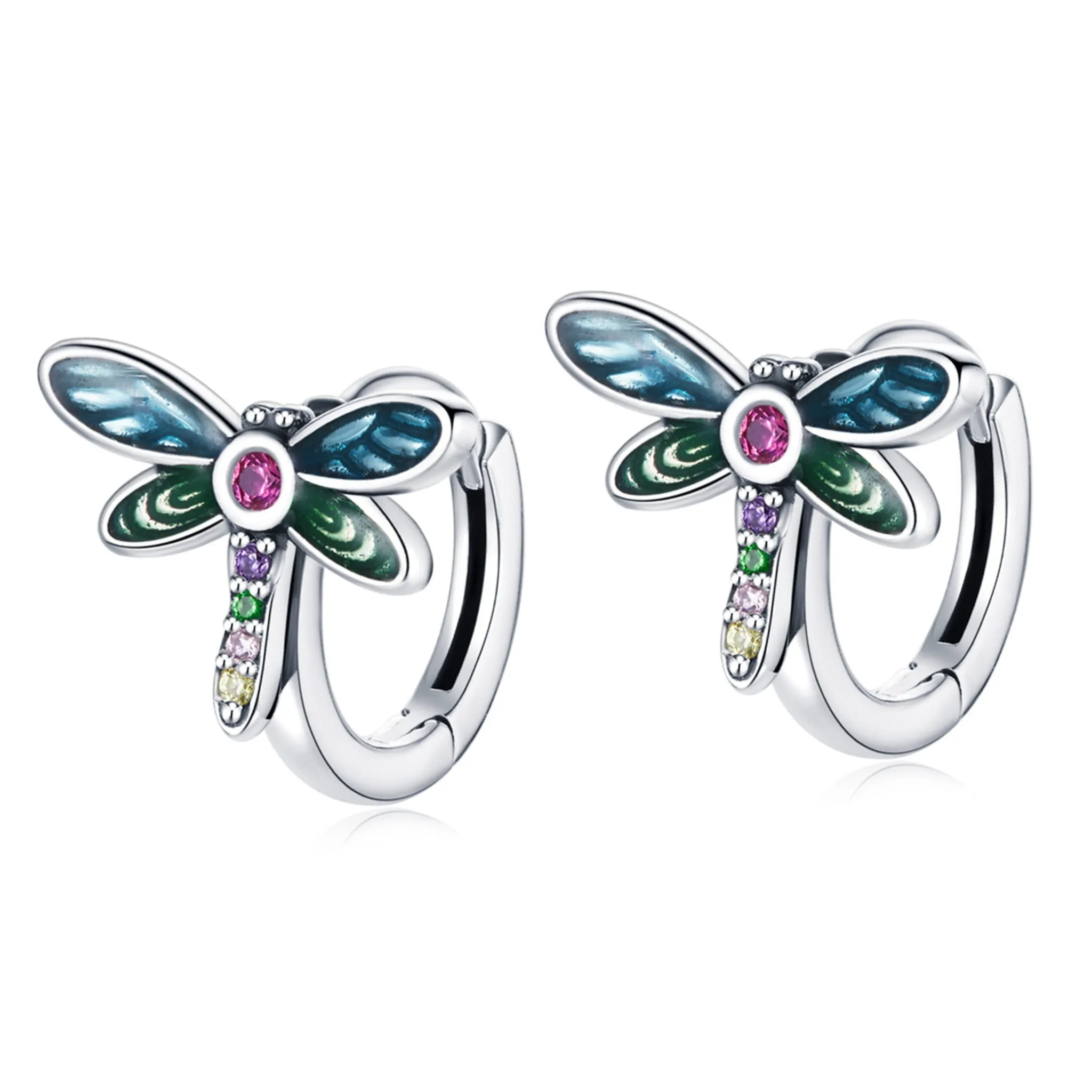 Srebrne kolczyki z kolorowymi ważkami zatrzaski srebro 925