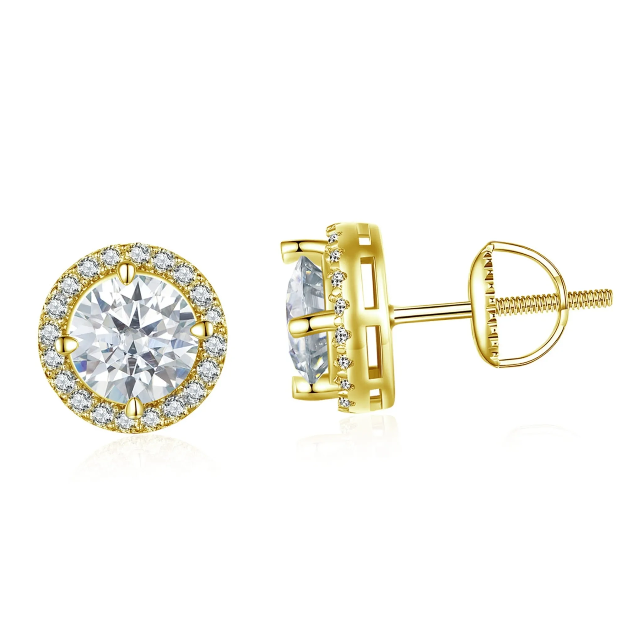 Srebrne kolczyki pozłacane Moissanity 1,0 ct sztyfty srebro 925