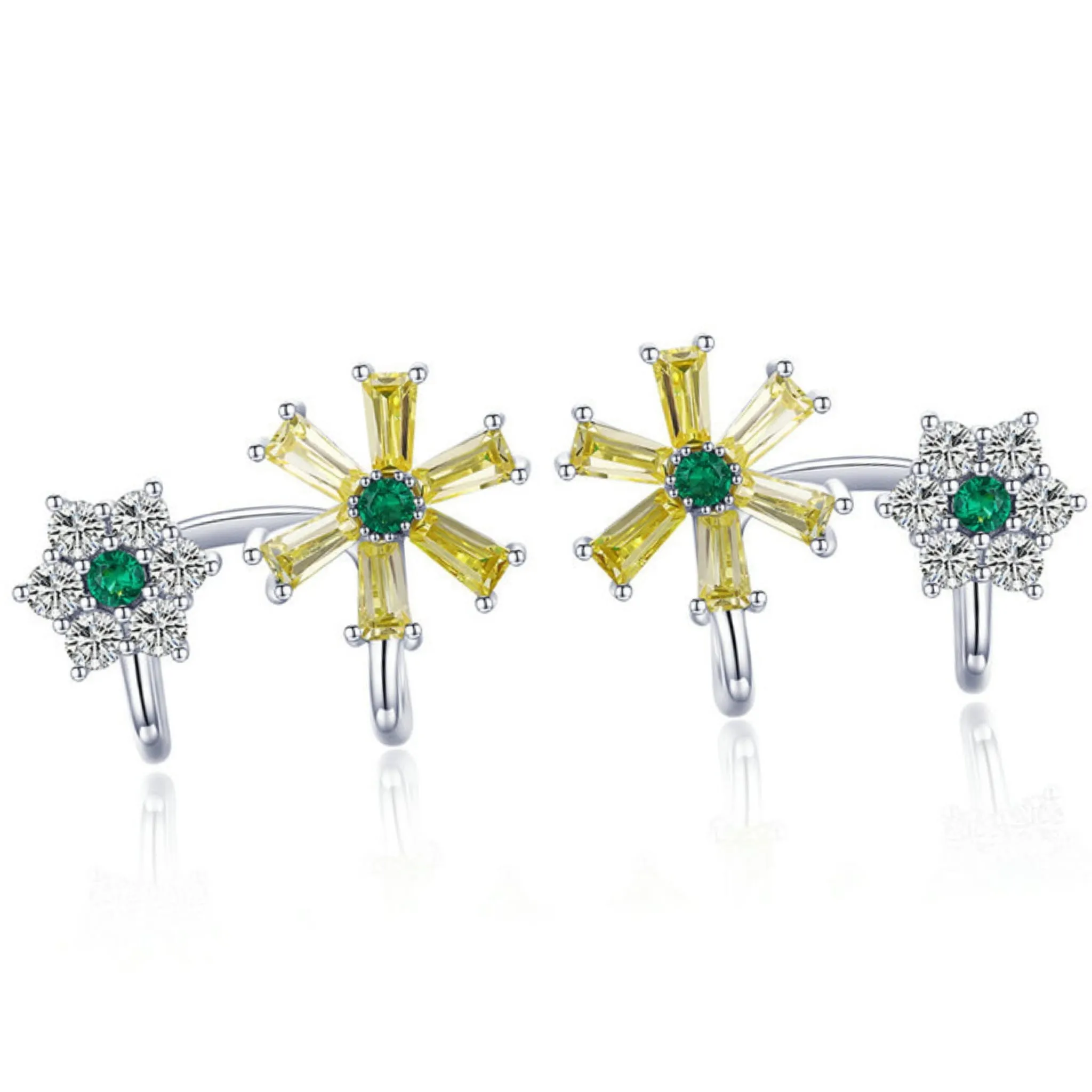 Srebrne nausznice w kryształowe kwiaty kolczyki srebro 925