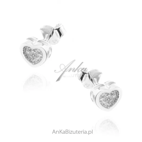 Kolczyki srebrne z cyrkoniami serduszka
