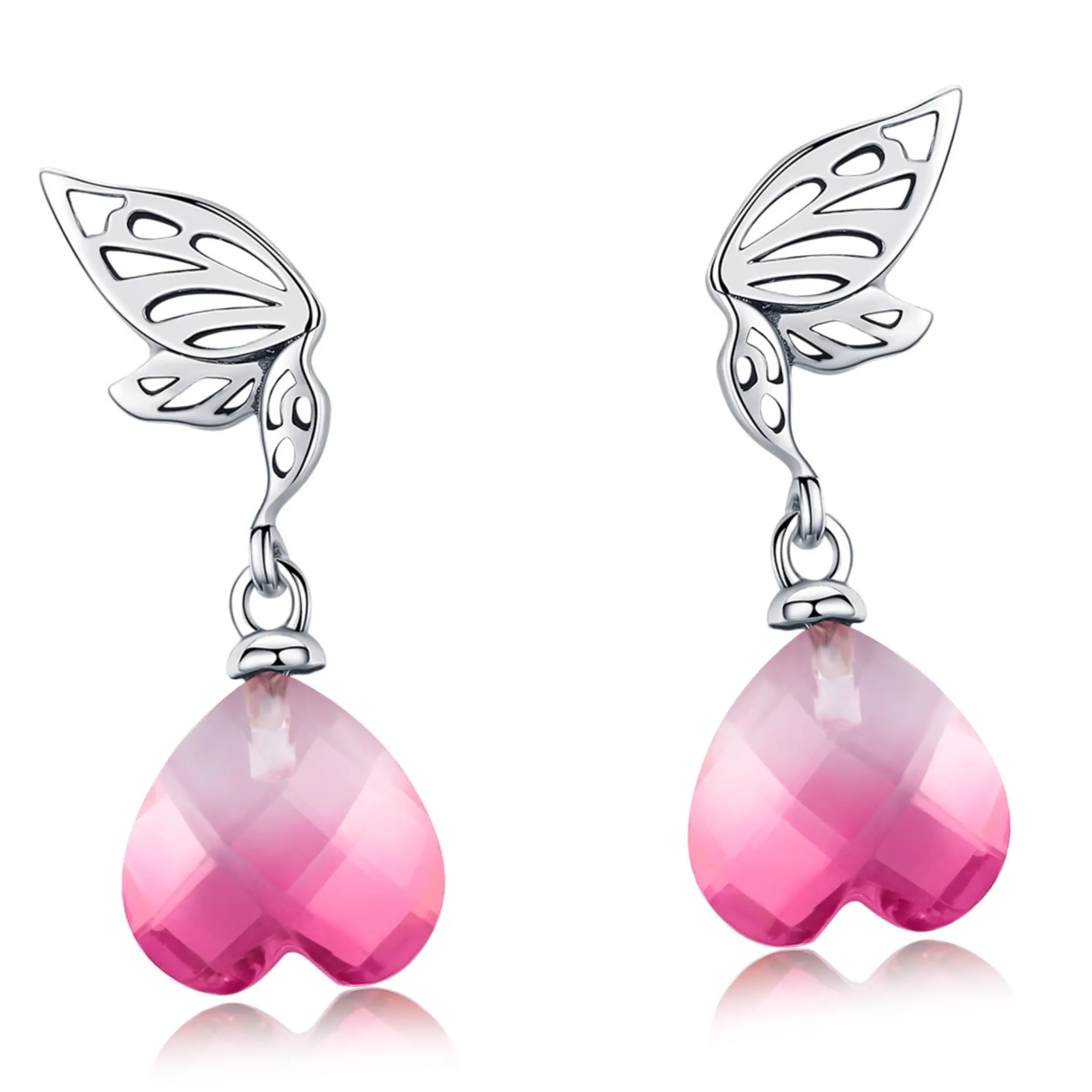 Srebrne kolczyki skrzydła motyla z serduszkami sztyfty srebro 925