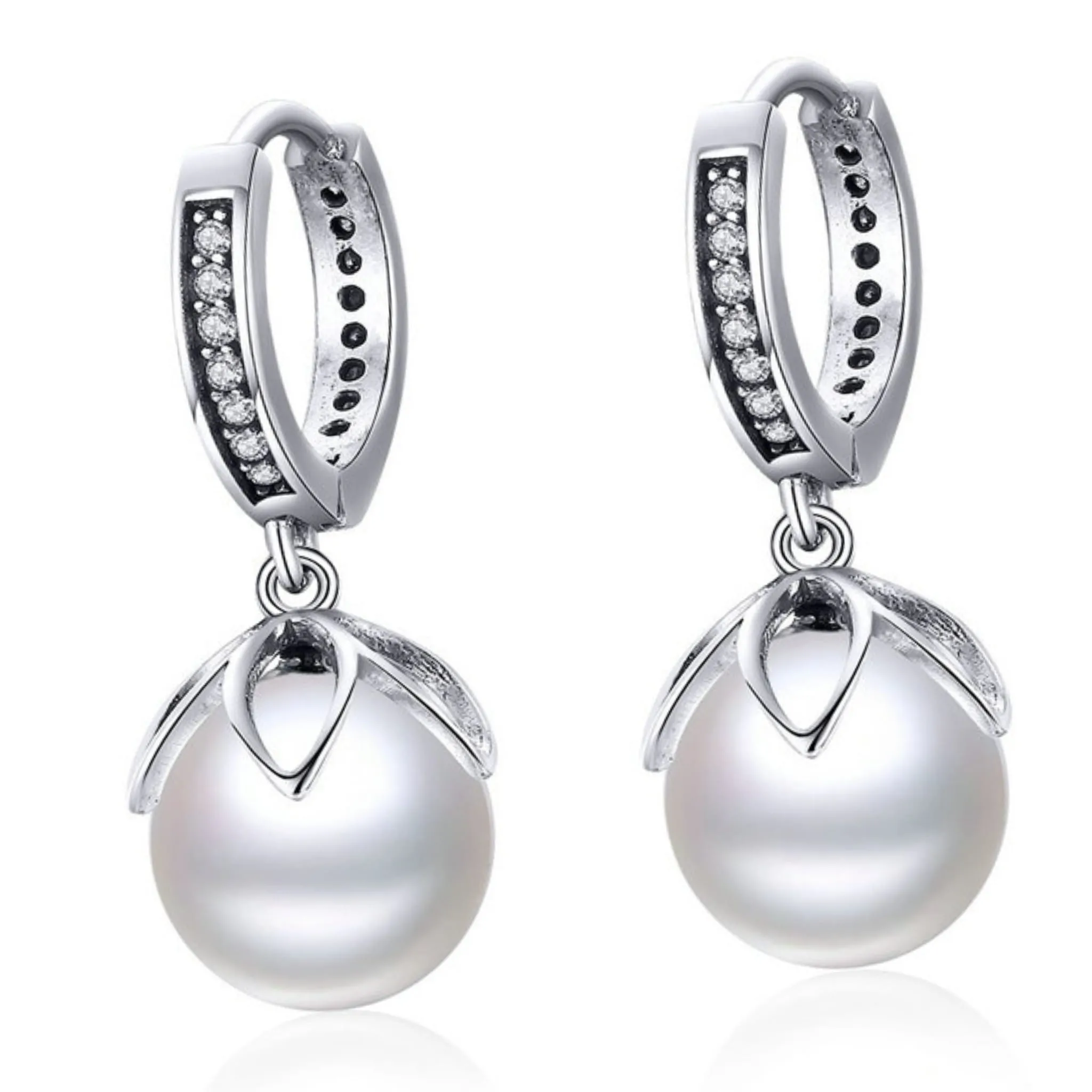 Srebrne kolczyki koła z wiszącymi perełkami zatrzaski srebro 925