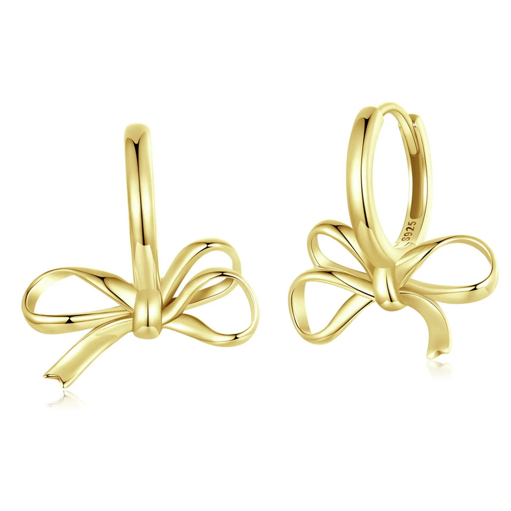 Srebrne kolczyki z kokardkami pozłacane koła zatrzaski srebro 925