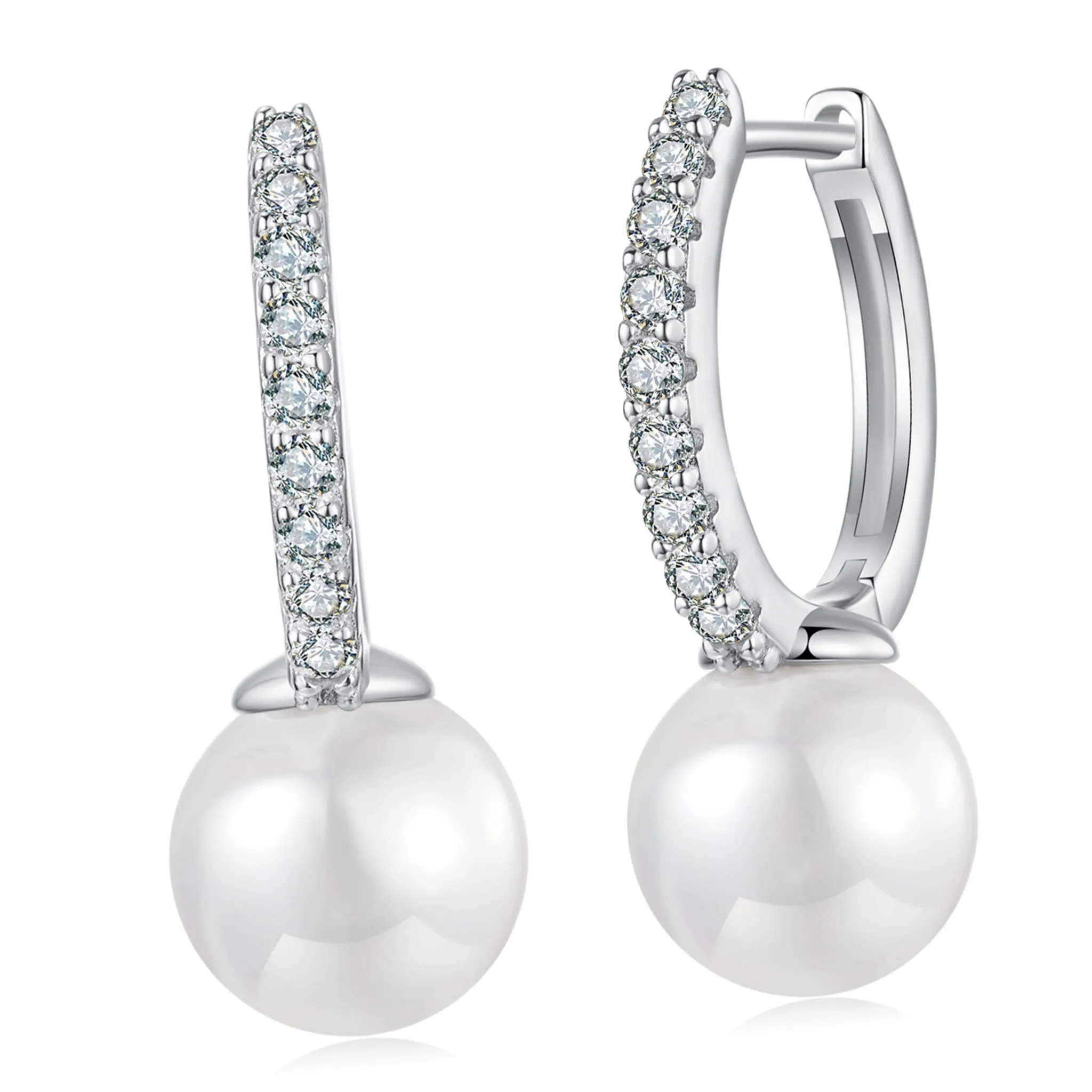 Srebrne kolczyki koła w kryształy Moissanity 0,015 ct z perłami srebro 925 zatrzaski