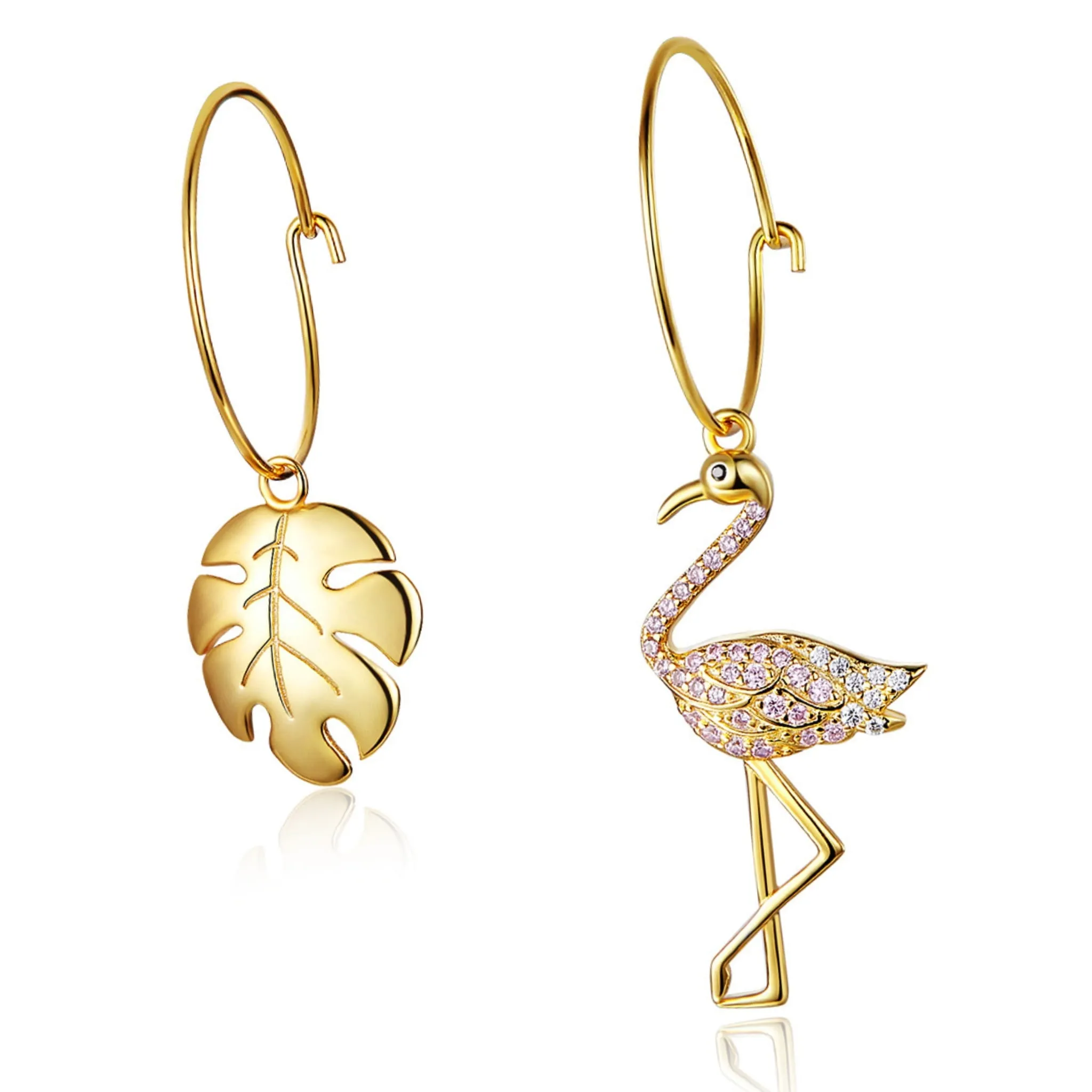 Srebrne kolczyki flaming i liść monstery pozłacane sztyfty srebro 925
