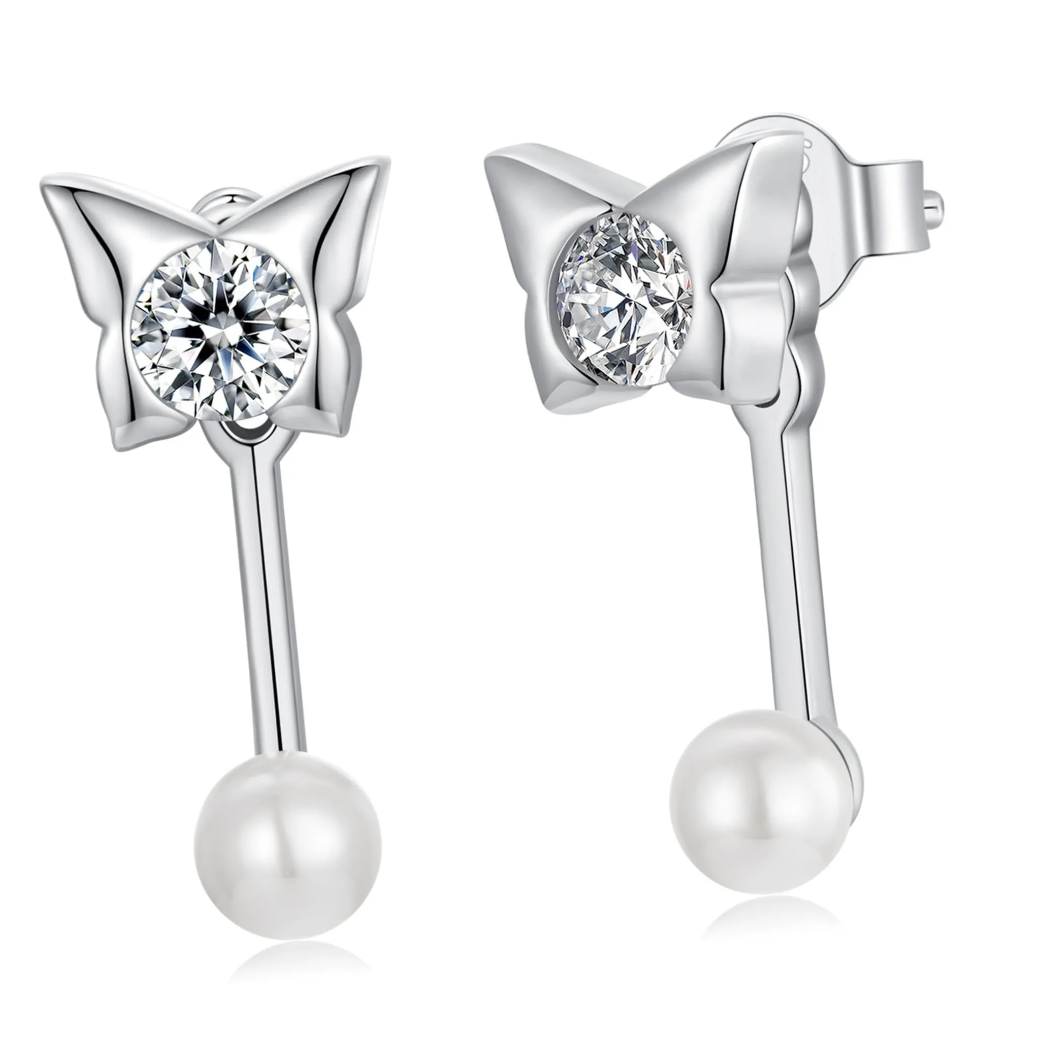 Srebrne kolczyki motylki z perełkami sztyfty srebro 925