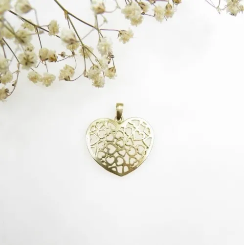 Wisiorek srebrny - Ażurowe serce pozłacane
