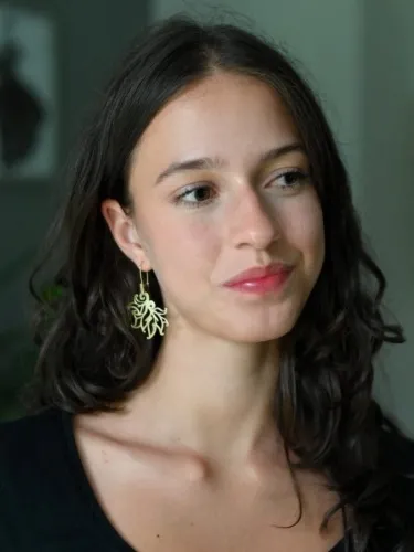 Efektowne kolczyki w kształcie prostokątów przedstawiających ażurowy wzór pnącej winorośli. Długość kolczyków 5,5 cm, długość samego ozdobnego elementu 4,5 cm, szerokość 1,7 cm. Waga: 11 gr. Kolczyki wykończone oksydą i wypolerowane. Szykowne, eleganckie, pięknie się prezentują. Nr katalogowy : A19KC