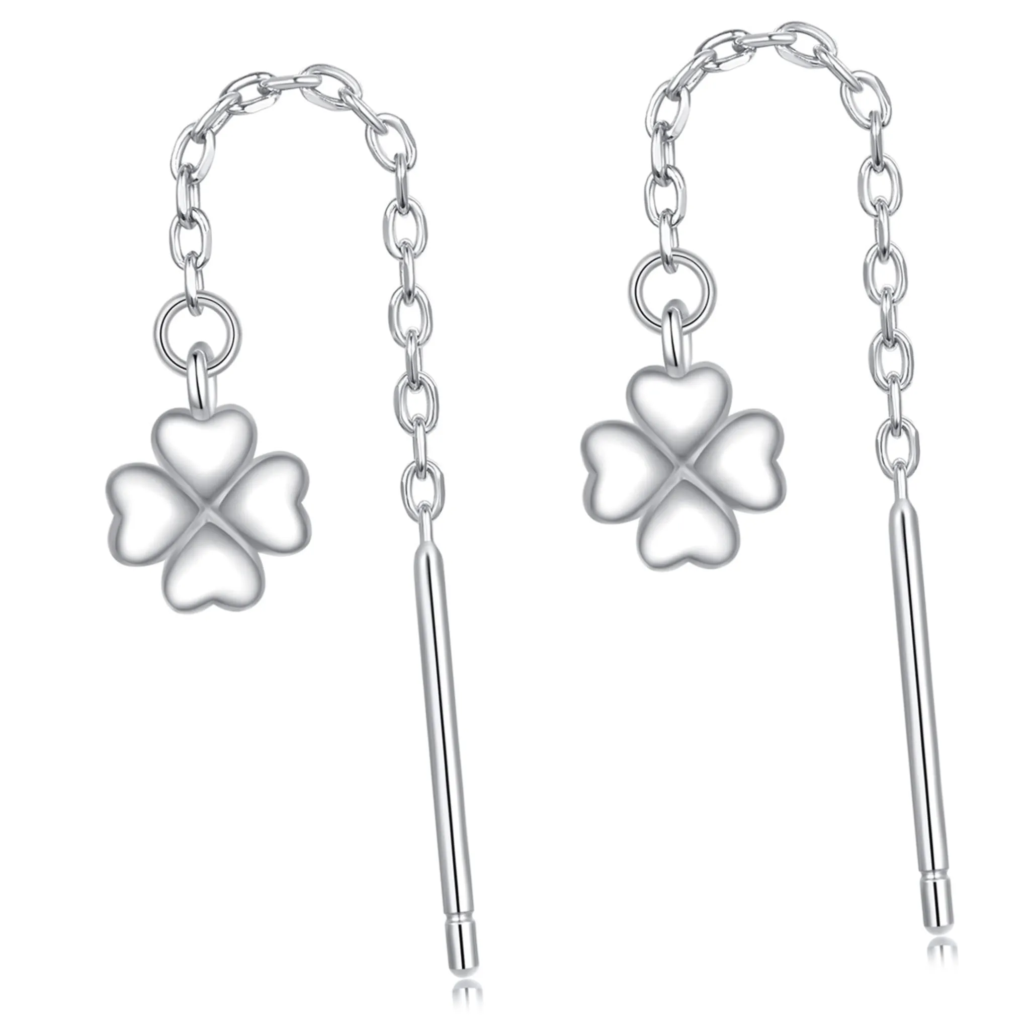 Srebrne kolczyki wiszące przewlekane z koniczynkami srebro 925