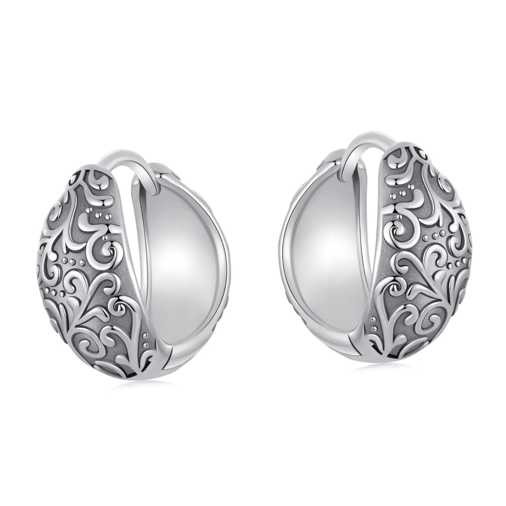 Srebrne kolczyki koła z roślinnym wzorem zatrzaski srebro 925