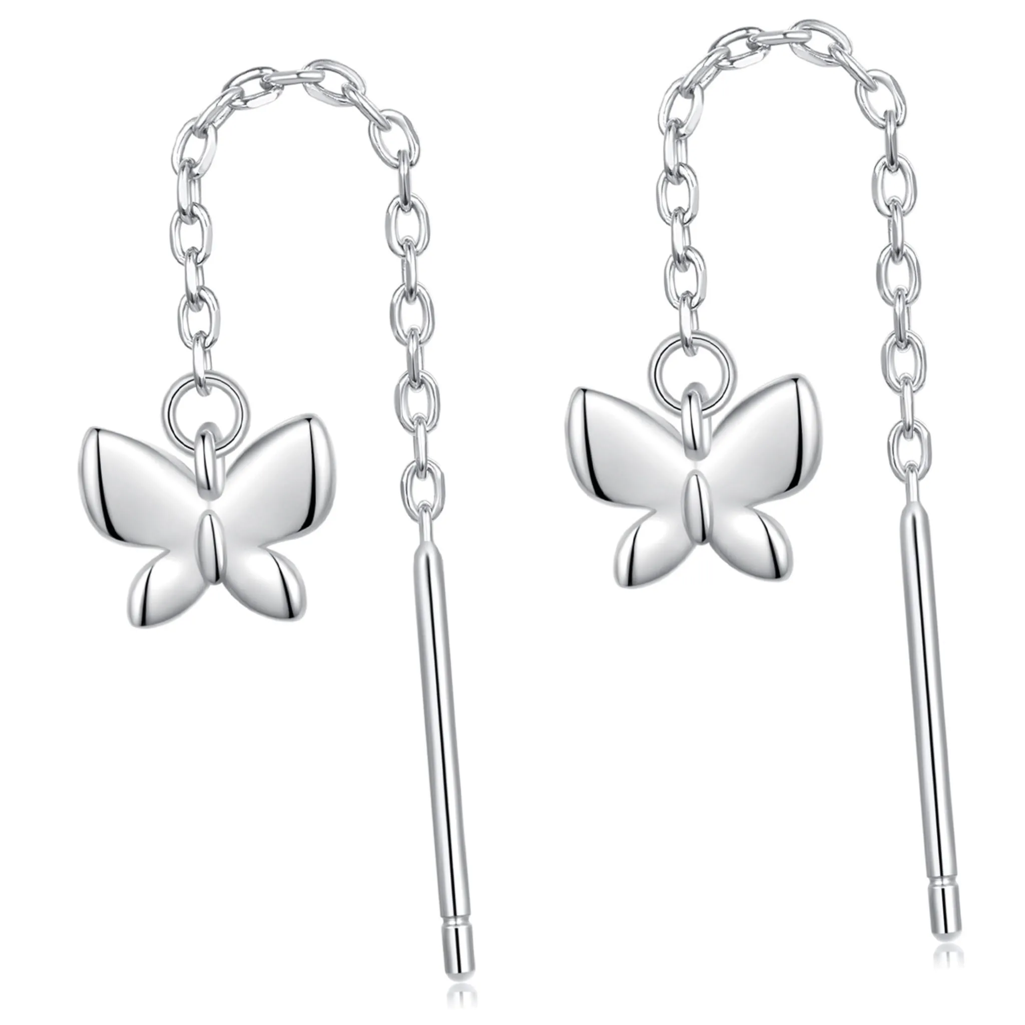 Srebrne kolczyki wiszące przewlekane z motylkami srebro 925