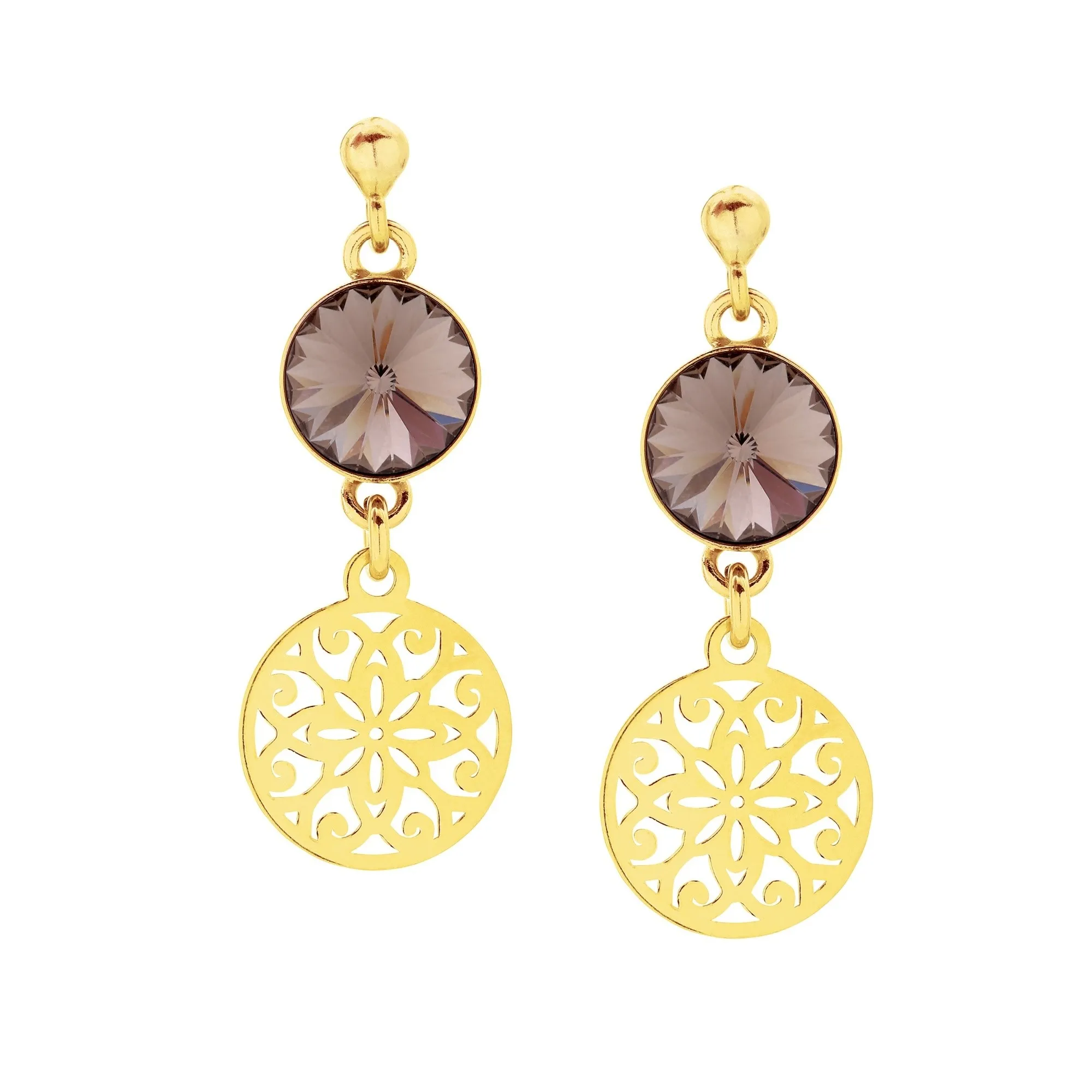Złote kolczyki z czekoladowymi kryształami SWAROVSKI® CRYSTAL