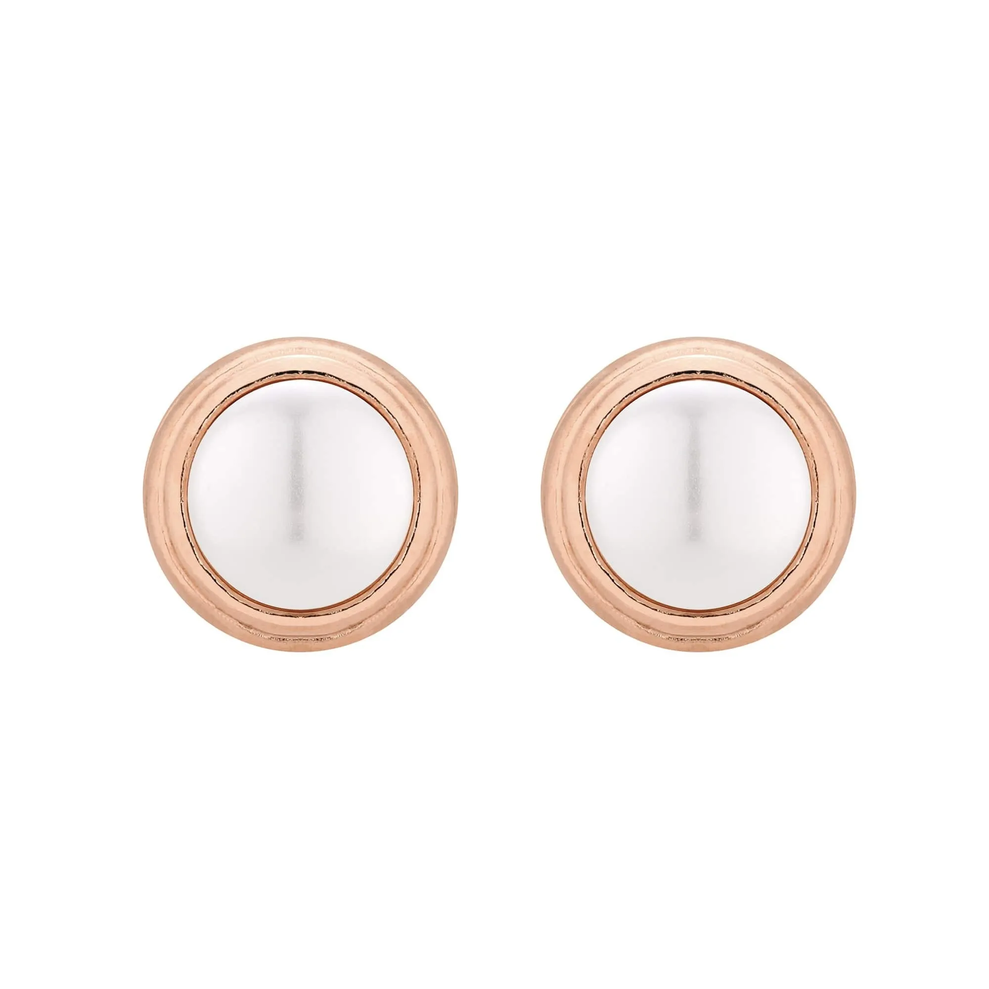Kolczyki z różowego złota z białą perłą SWAROVSKI® CRYSTAL