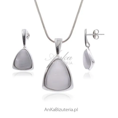 Uleksyt biało-szary-komplet srebrny z uleksytem