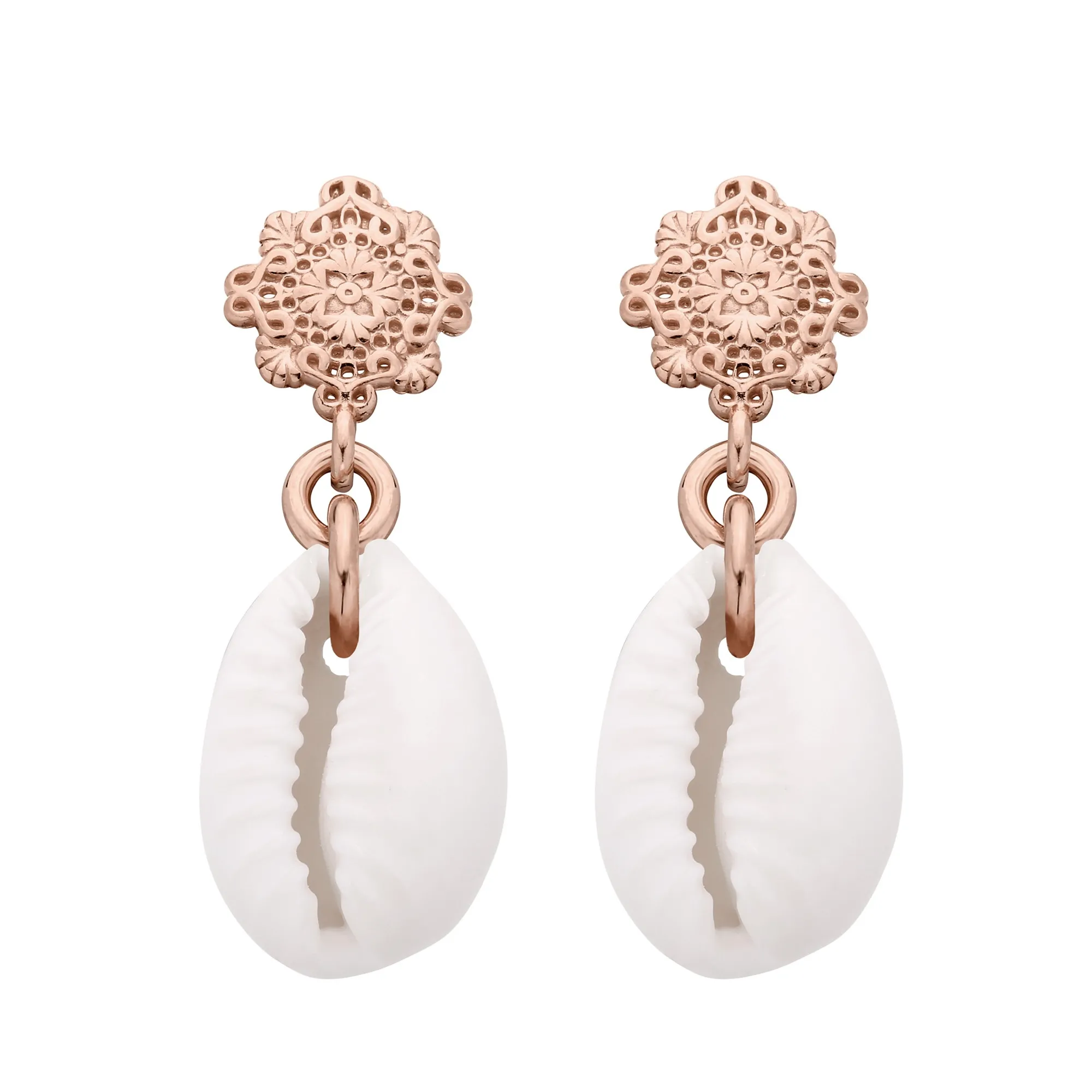 Srebrne kolczyki z muszelkami. Całość wykonana ze srebra 925. Długość kolczyków ok 2,5 cm Sztyft 8 x 4 mm Medalion 16 mm Produkt o wadze poniżej 5 g. Zapakowane w eleganckie pudełeczko z logo marki. Posiadają logowaną metkę. Istnieje możliwość zamówienia kolczyków w wersji ze srebra 925 powlekanego 24 karatowym żółtym lub różowym złotem, na innych biglach, klipsów, z dodatkowymi zawieszkami, kamieniami, perłami lub kryształami SWAROVSKI® CRYSTAL itp.