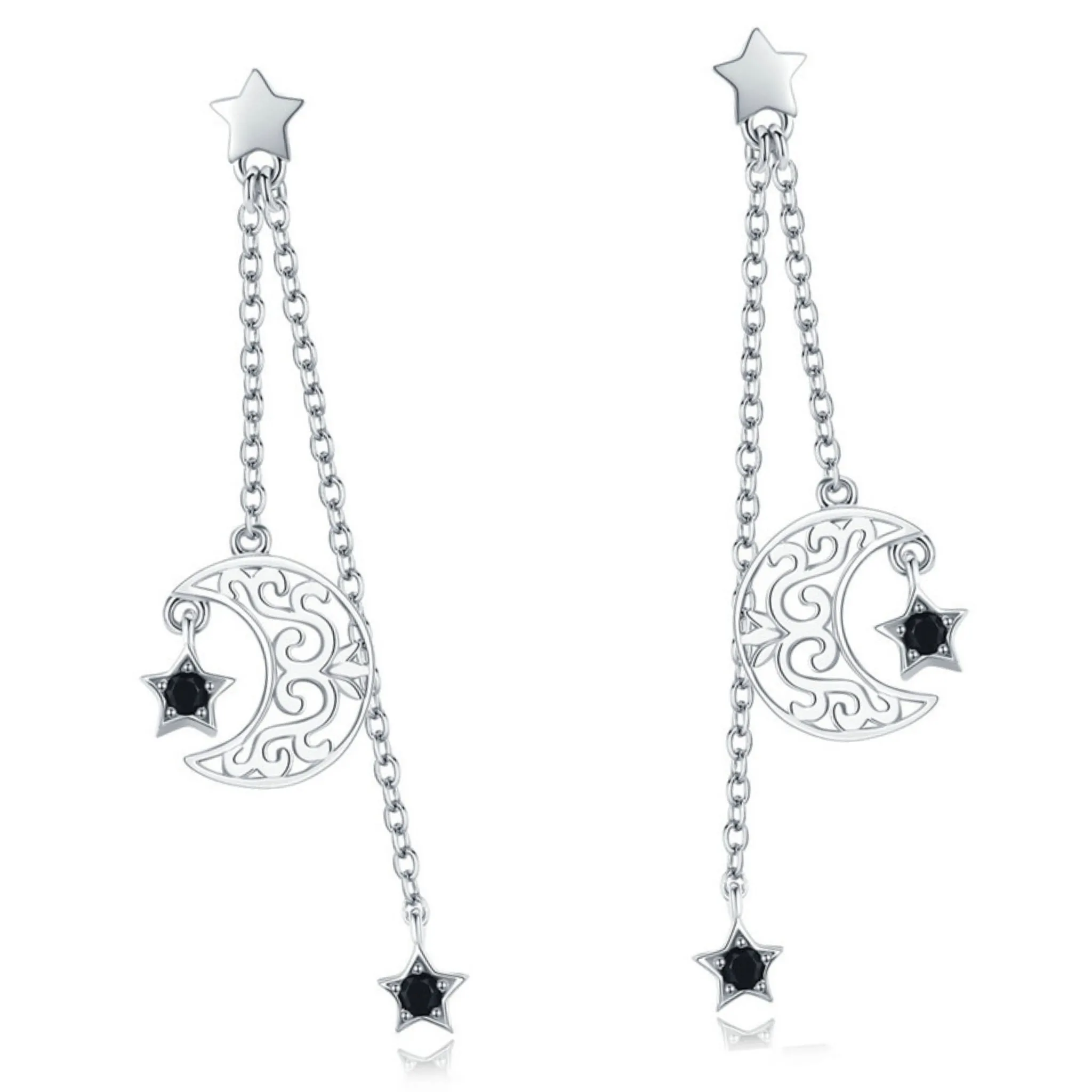 Srebrne kolczyki wiszące księżyce i gwiazdy sztyfty srebro 925