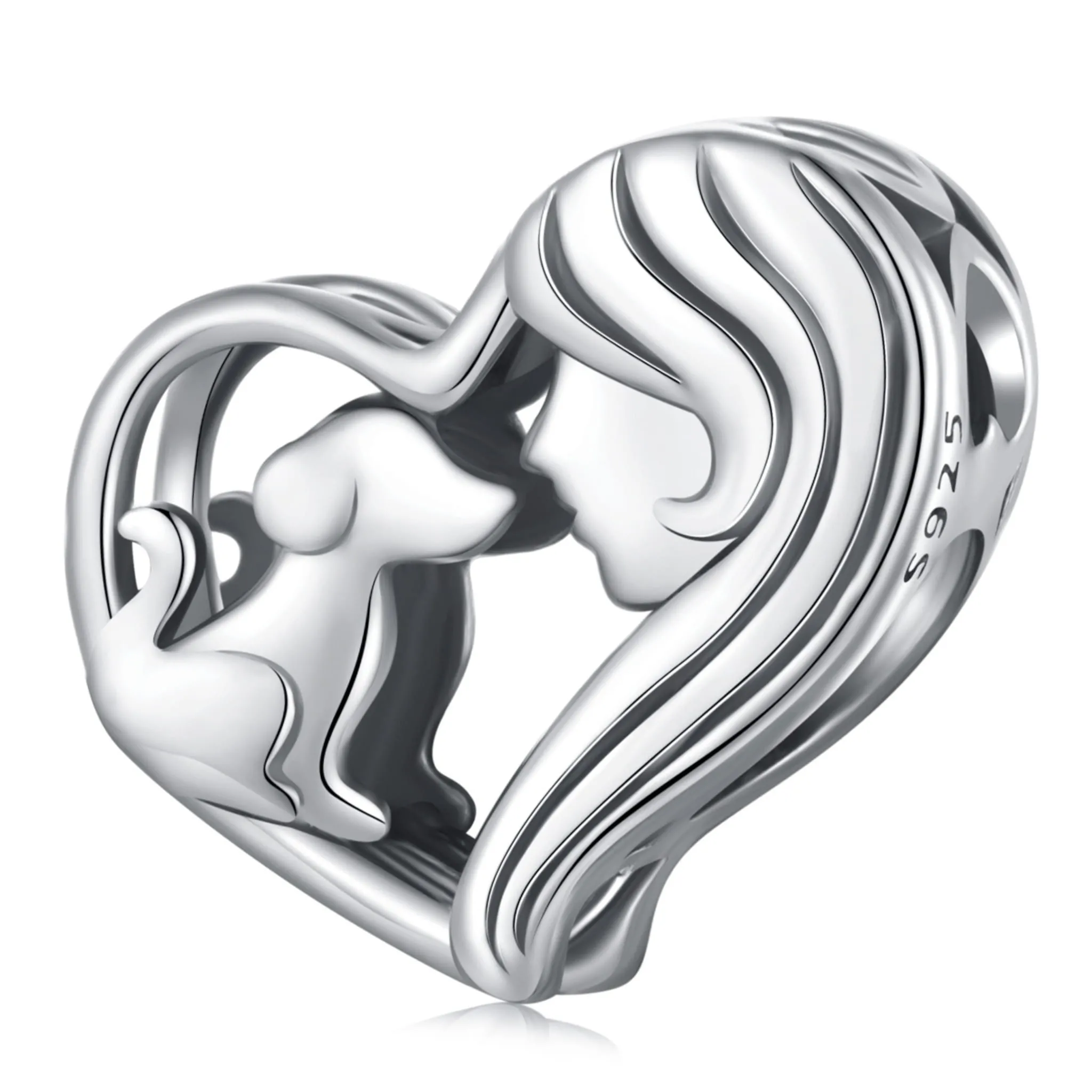 Srebrny charms dziewczyna z pieskiem koralik srebro 925 beads