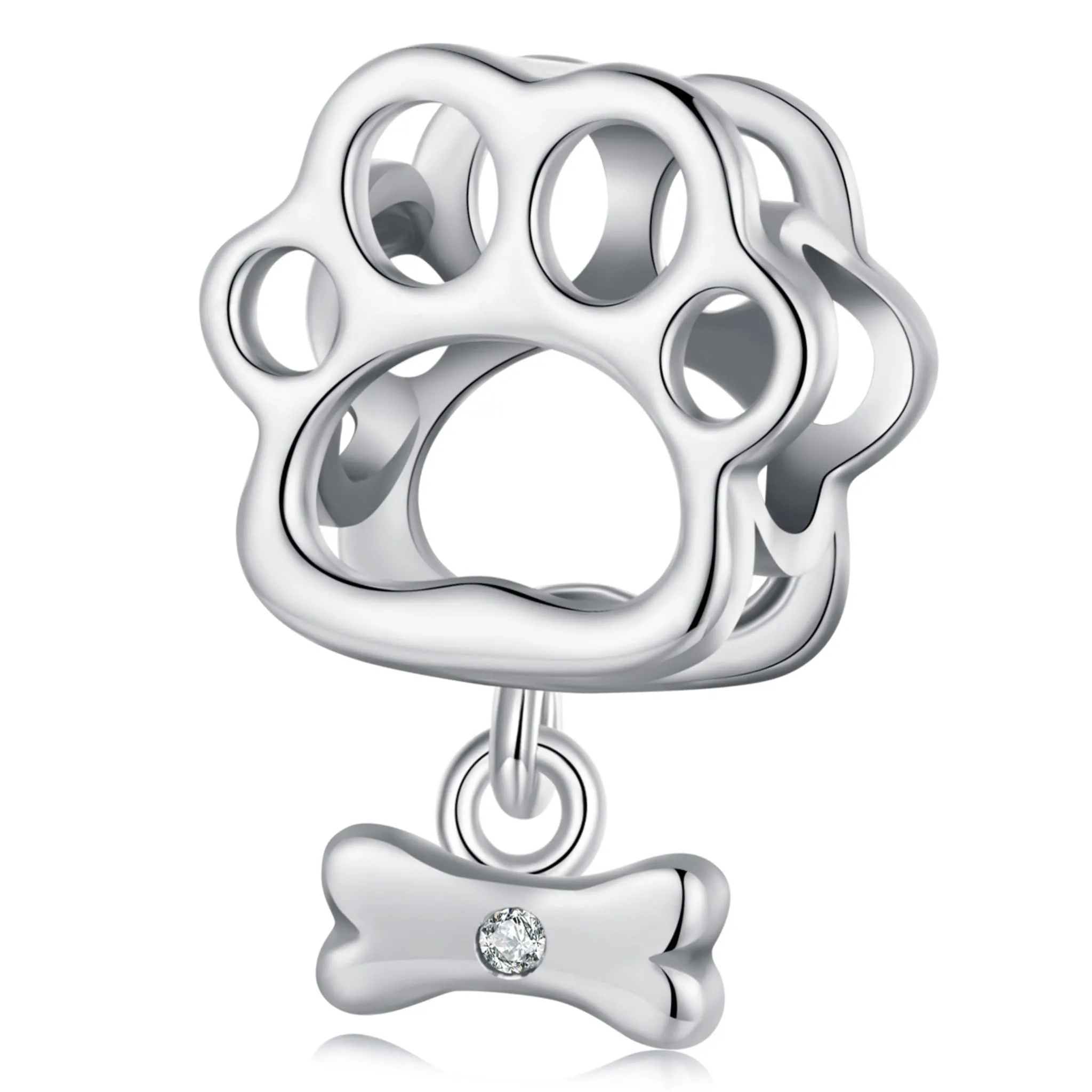 Srebrny charms łapka pieska z kostką koralik srebro 925 beads