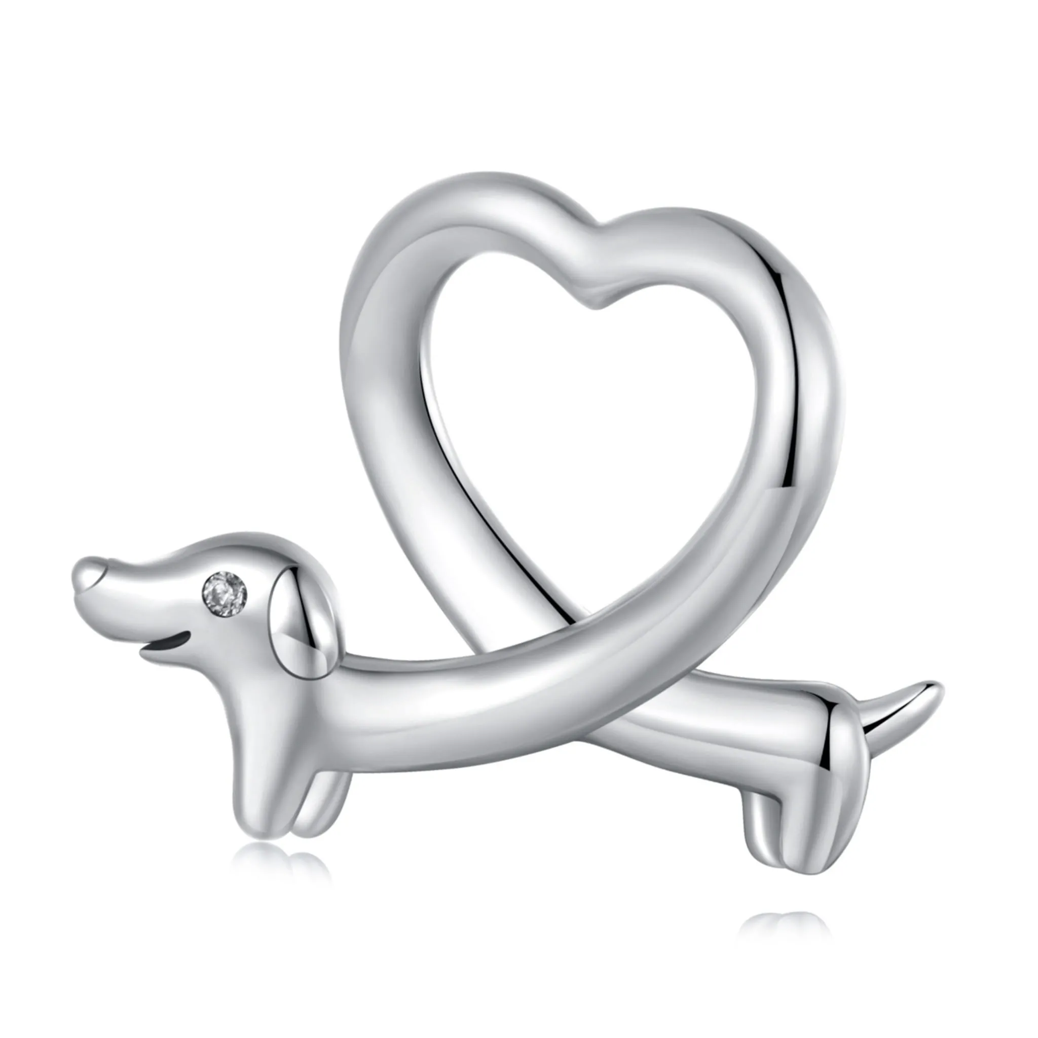 Srebrny charms jamnik w kształcie serduszka koralik srebro 925 beads