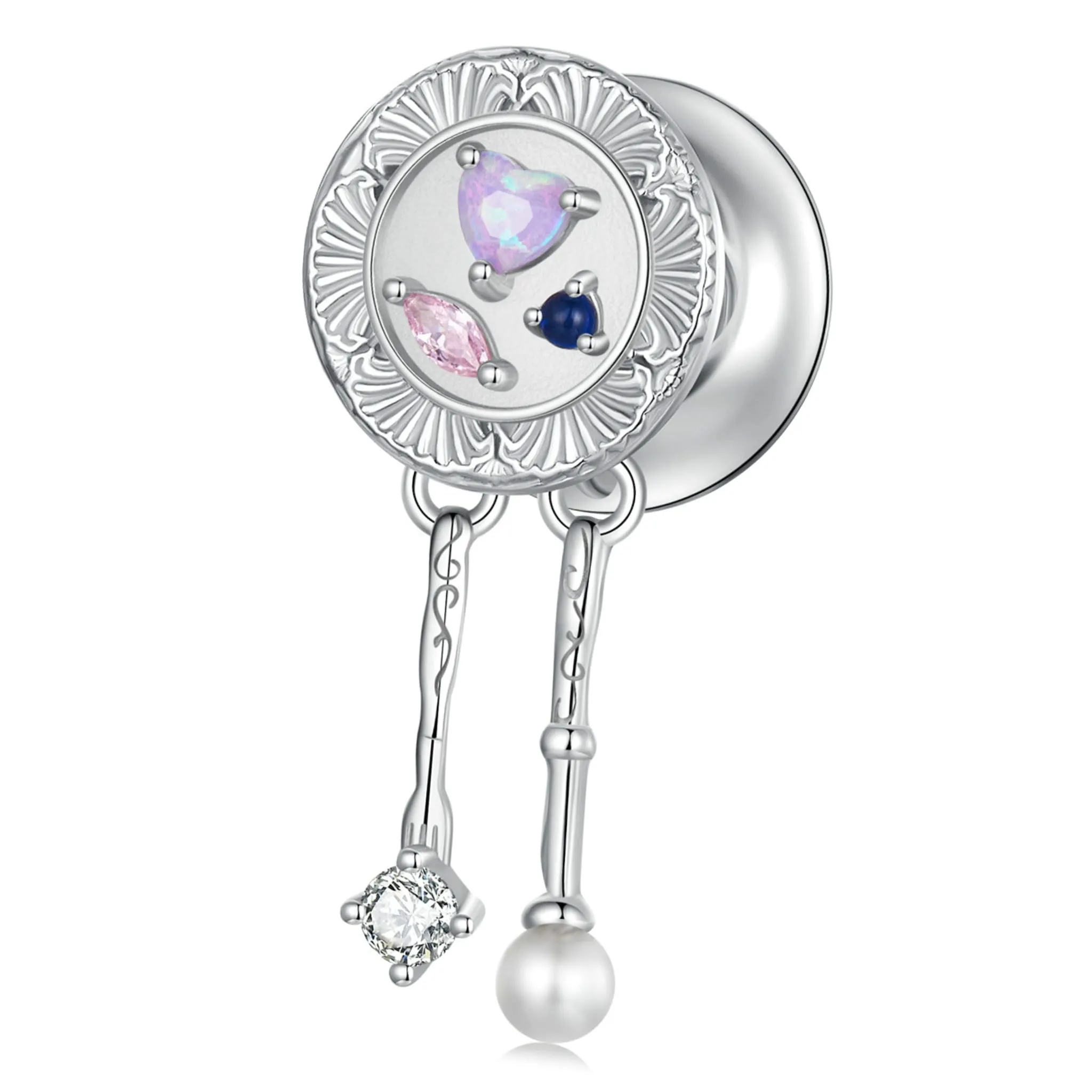 Srebrny charms z kolorowymi kryształami i perełką koralik srebro 925 beads