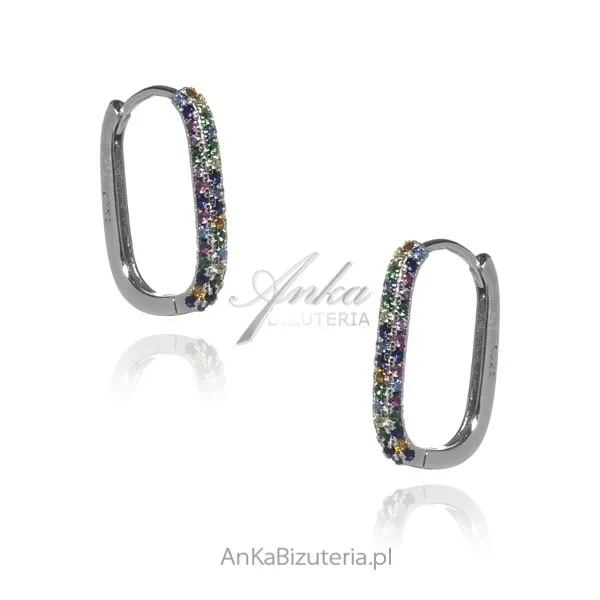 Srebrne kolczyki z kolorowymi cyrkoniami