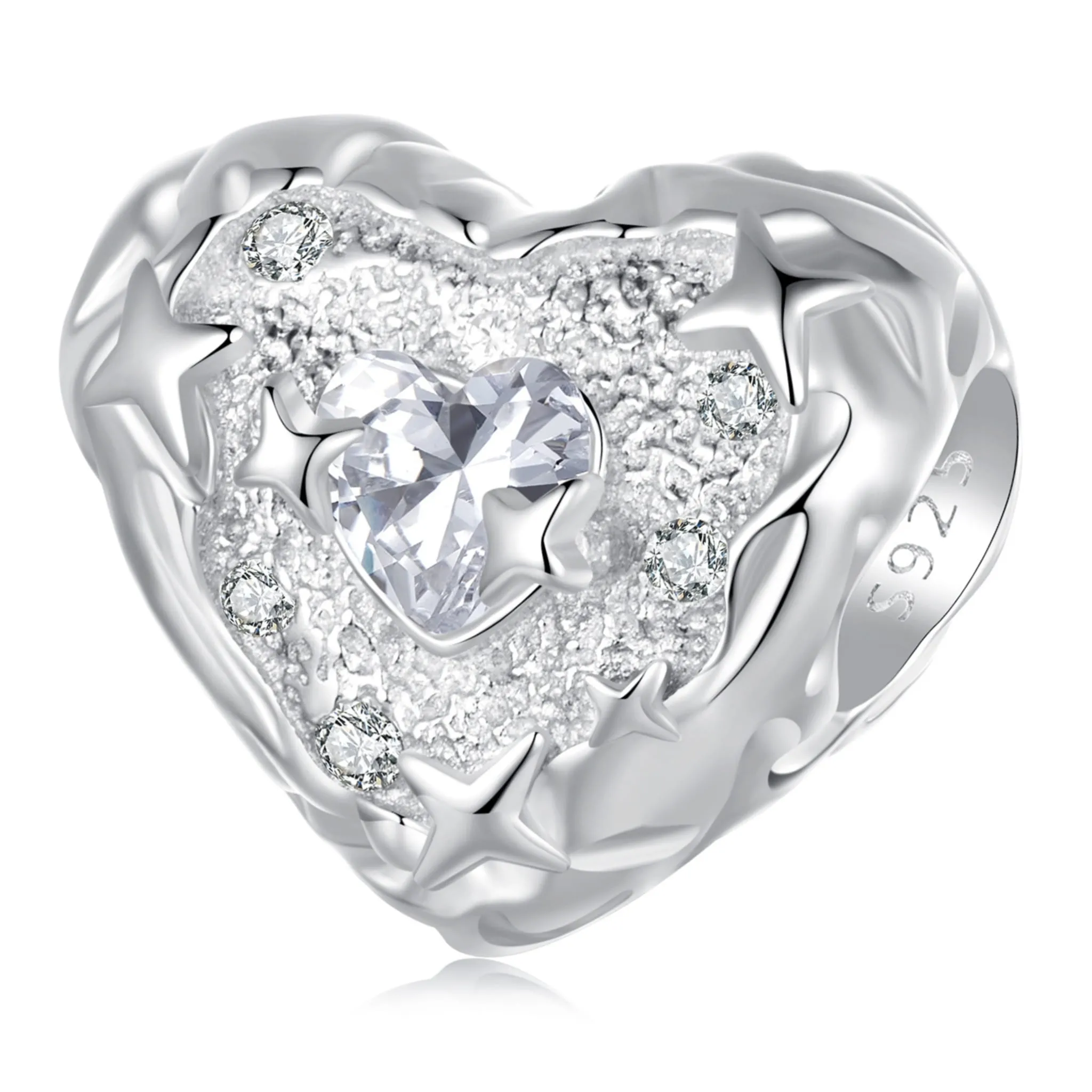 Srebrny charms kryształowe serce koralik srebro 925 beads