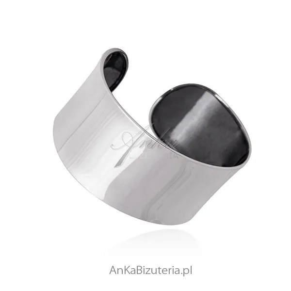 Sztywna szeroka bransoletka srebrna rodowana piękna!