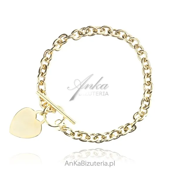Bransoletka srebrna pozłacana ti amo duże serce z tibonem - biżuteria włoska - grawer gratis!