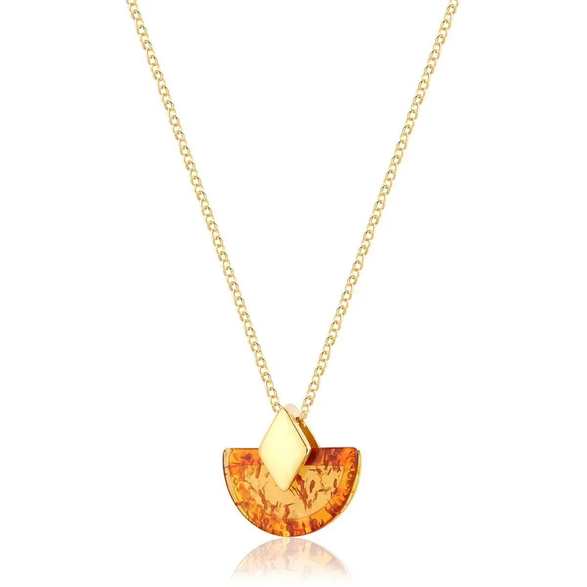 Naszyjnik srebrny pozłacany z koniakowym bursztynem Different