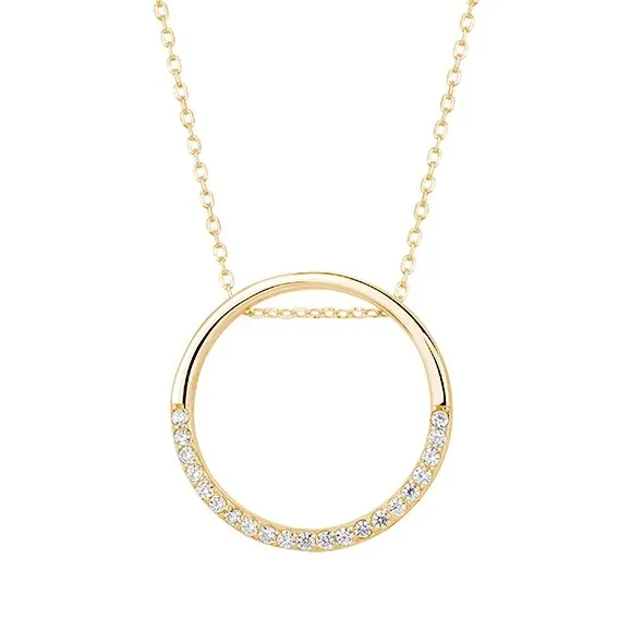 Srebrny naszyjnik koło kółko z cyrkoniami pokryty żółtym złotem