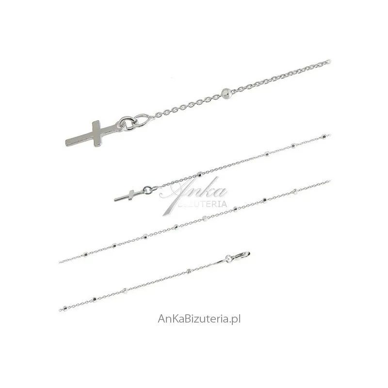 Srebrna bransoletka rodowana różaniec