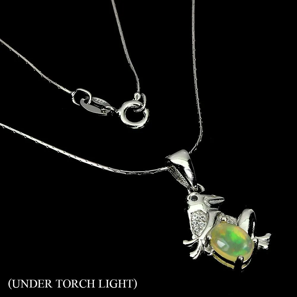Naszyjnik żaba srebro naturalny topaz ognisty opal