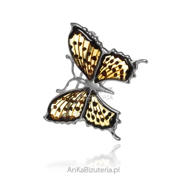 Broszka srebrna z grawerowanym bursztynem rusałka
