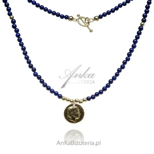 Naszyjnik srebrny pozłacany medalion z granatowym lapis lazuli