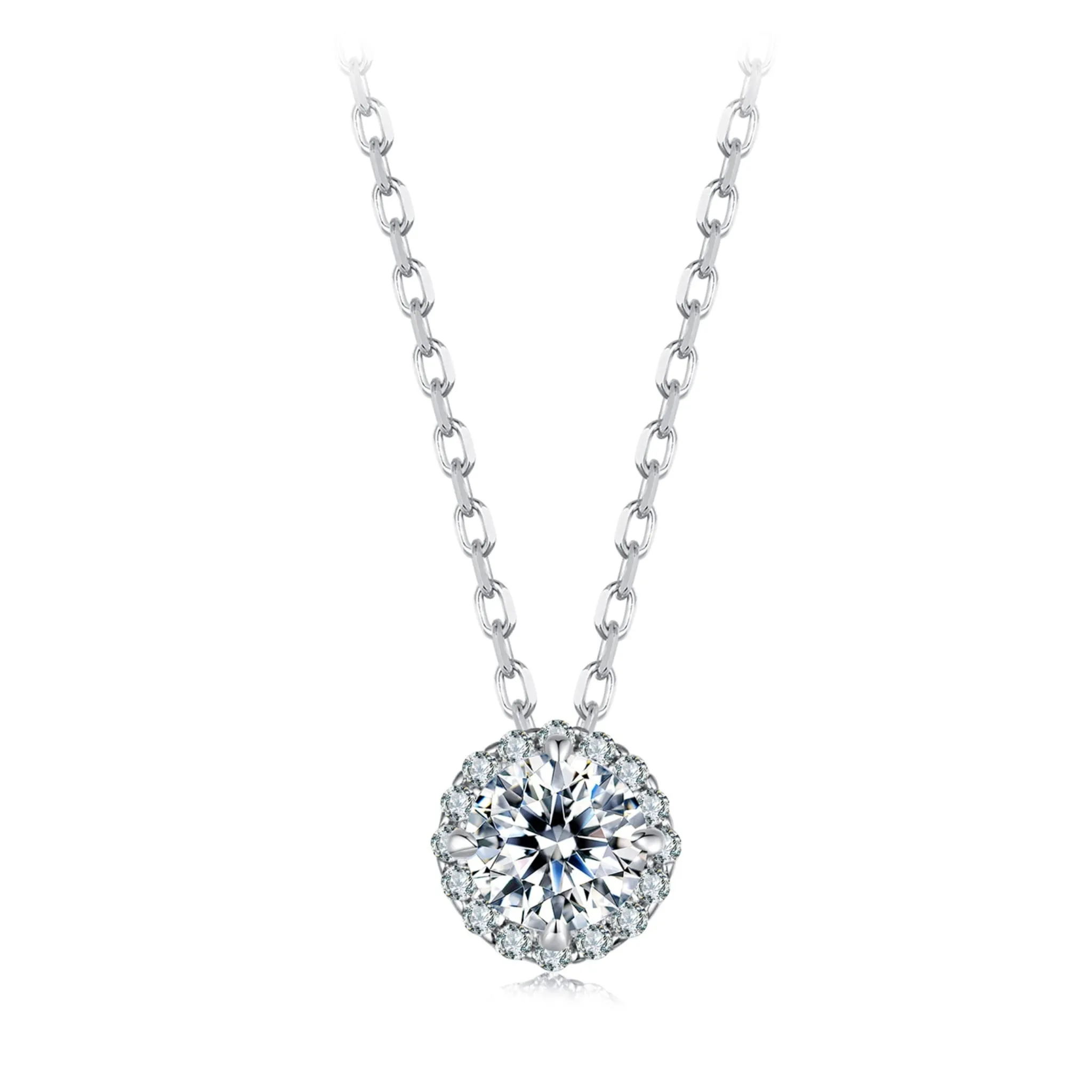 Srebrny naszyjnik Moissanit 0,5 ct otoczony kryształkami srebro 925 rozmiar S